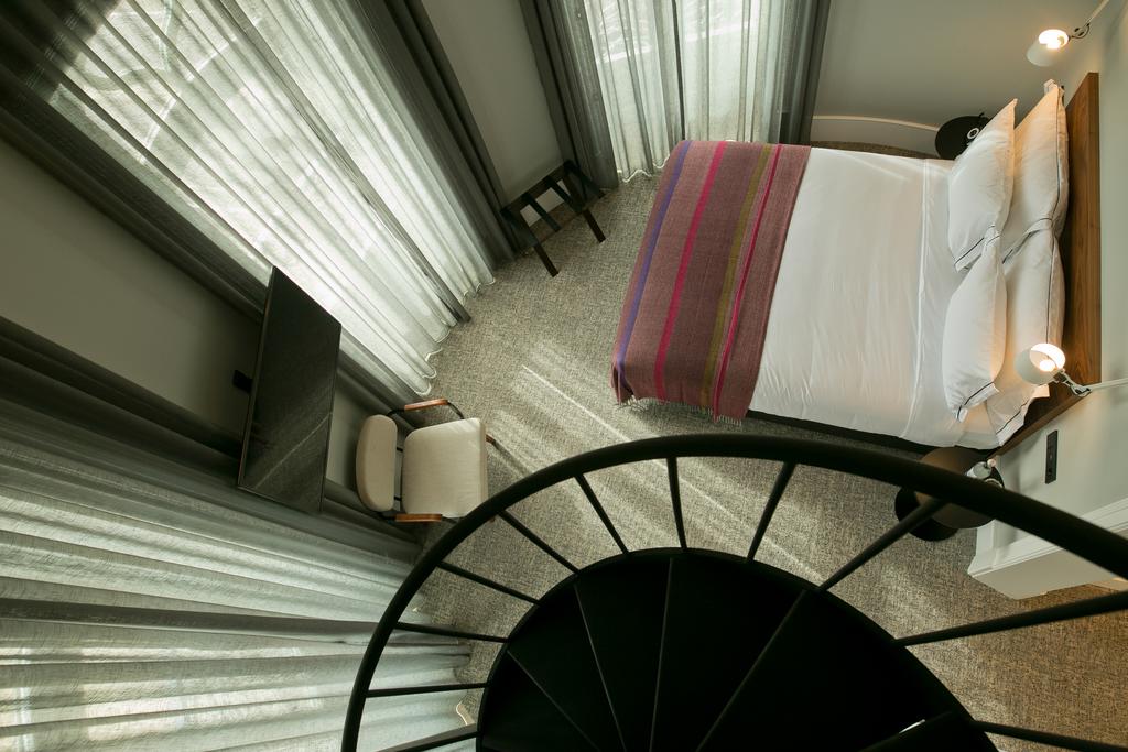 At the heart of the hotel, the Infame Restaurant brings Lisbon’s culinary spirit to life. Its bold, creative menu mirrors the neighborhood’s vibrant diversity, fusing local produce with global inspiration. The adjacent bar—both chic and unpretentious—serves as a social hub where design lovers, travelers, and locals gather under the warm glow of sculptural lighting and the hum of conversation. And for those seeking the pinnacle of experience, the King of Dome suite reigns above it all. Its round window, perfectly framed beneath the restored dome, offers a cinematic view of Lisbon’s terracotta rooftops. Below, a plush bedroom and spa-like bathroom—with freestanding tub and rainfall shower—compose a haven of modern indulgence wrapped in architectural poetry.