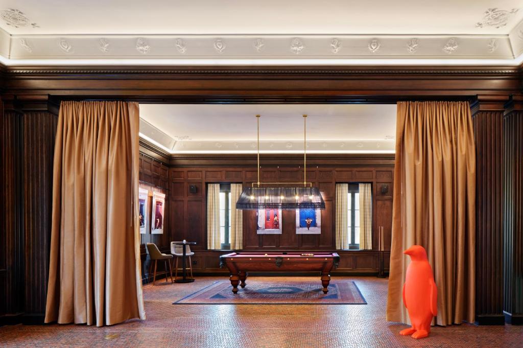 173 guestrooms continue the dialogue of heritage and modernity. Neutral palettes, polished wood, and curated furnishings create a quiet canvas, offset by custom artworks and city views. High ceilings and generous windows recall the building’s origins, while modern amenities—plush beds, rain showers, and curated minibars—ground the stay in comfort. It’s minimalism with warmth, designed for reflection as much as rest.