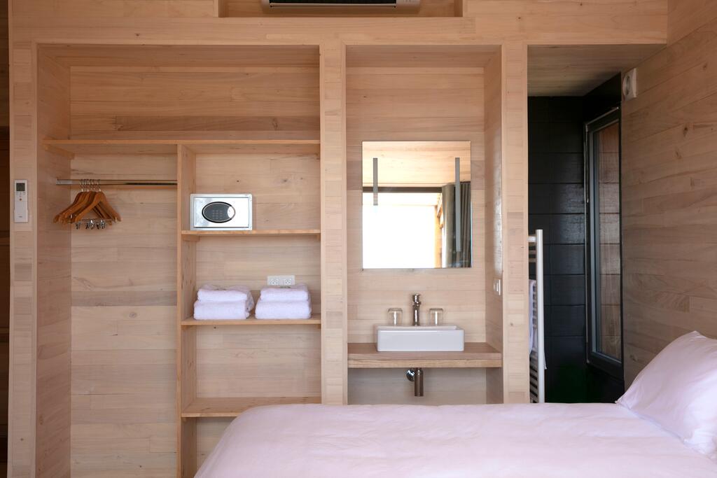 Eføy (“ivy”): compact, cozy double bedrooms beneath mezzanine living spaces.