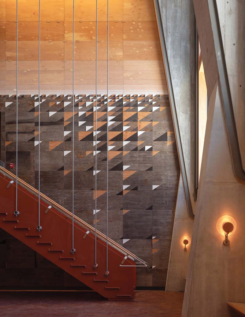 Step into the soaring lobby and you’ll feel it: this is a space that hums with quiet drama. The concrete arches are pure Brutalist poetry, but it’s the way the central floor platform appears to float — suspended by steel rods — that really stops you in your tracks. The fireplace glows, the wood detailing warms, and the lighting feels just right for a rendezvous or solo deep-thought session.