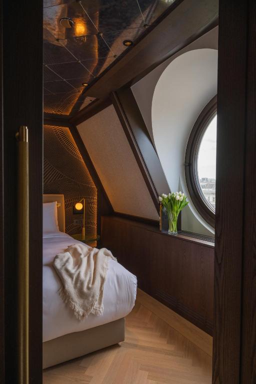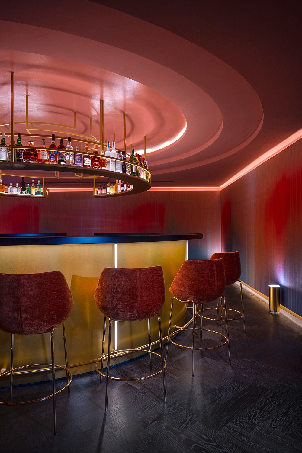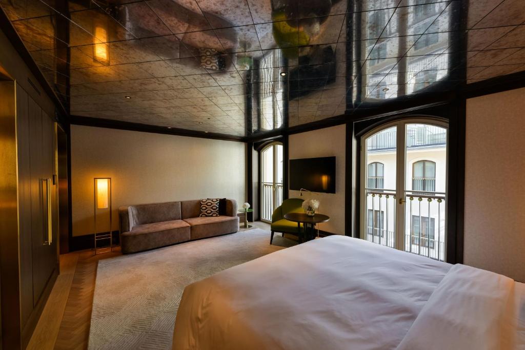 Spanish designer Jaime Beriestain—the creative mind behind the acclaimed Almanac Barcelona—has infused the interiors with his trademark balance of warmth, sophistication, and subtle drama. The palette leans into rich textures and sensual tones: polished marble, burnished brass, velvety upholstery, and soft ambient light that bathes corridors and rooms in a golden glow. It’s unmistakably Viennese in its grandeur, yet refreshingly untraditional in execution—sexy, inviting, and quietly theatrical.