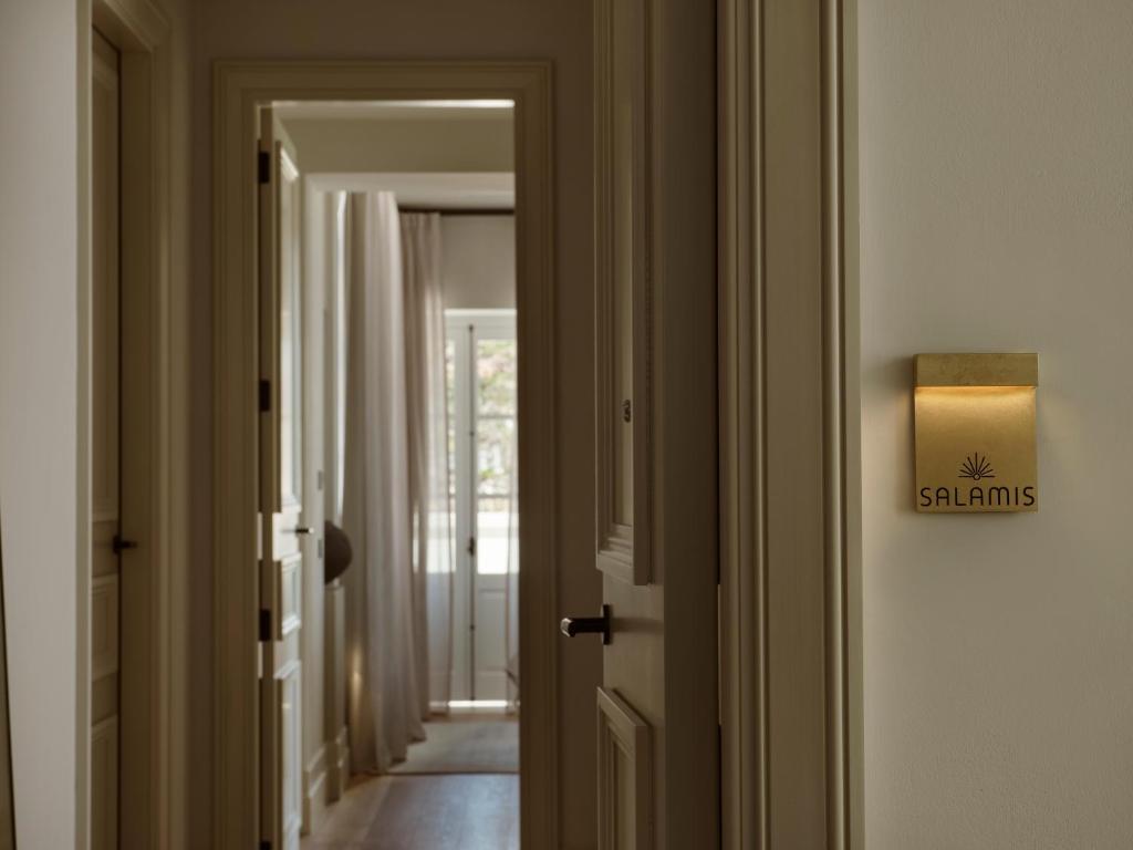 Originally designed as two private residences, later transformed into a girls’ school, the building has been carefully brought back to life by Eraclis Papachristou Architects and designer Maria Neophytou. The restoration is deliberate and restrained. Painted ceilings, vintage tiles, carved woodwork, and the villa’s grand staircase remain untouched in spirit, allowing the architecture to lead the narrative. Every intervention feels intentional—never imposed.