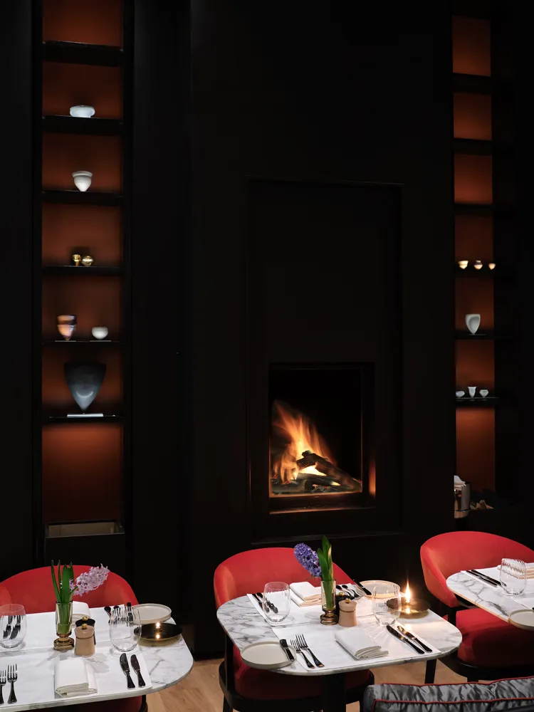 At the heart of the villa, the courtyard and lounge offer moments of pause after the city’s intensity. The atmosphere is intimate—more residence than hotel. Downstairs, Amyth Kouzina brings together Cypriot tradition and Mediterranean influence. Local ingredients shape the menu, while the olive-tree terrace sets the tone for long, unhurried evenings. A brandy sour in hand, the pace of the island becomes unmistakable.