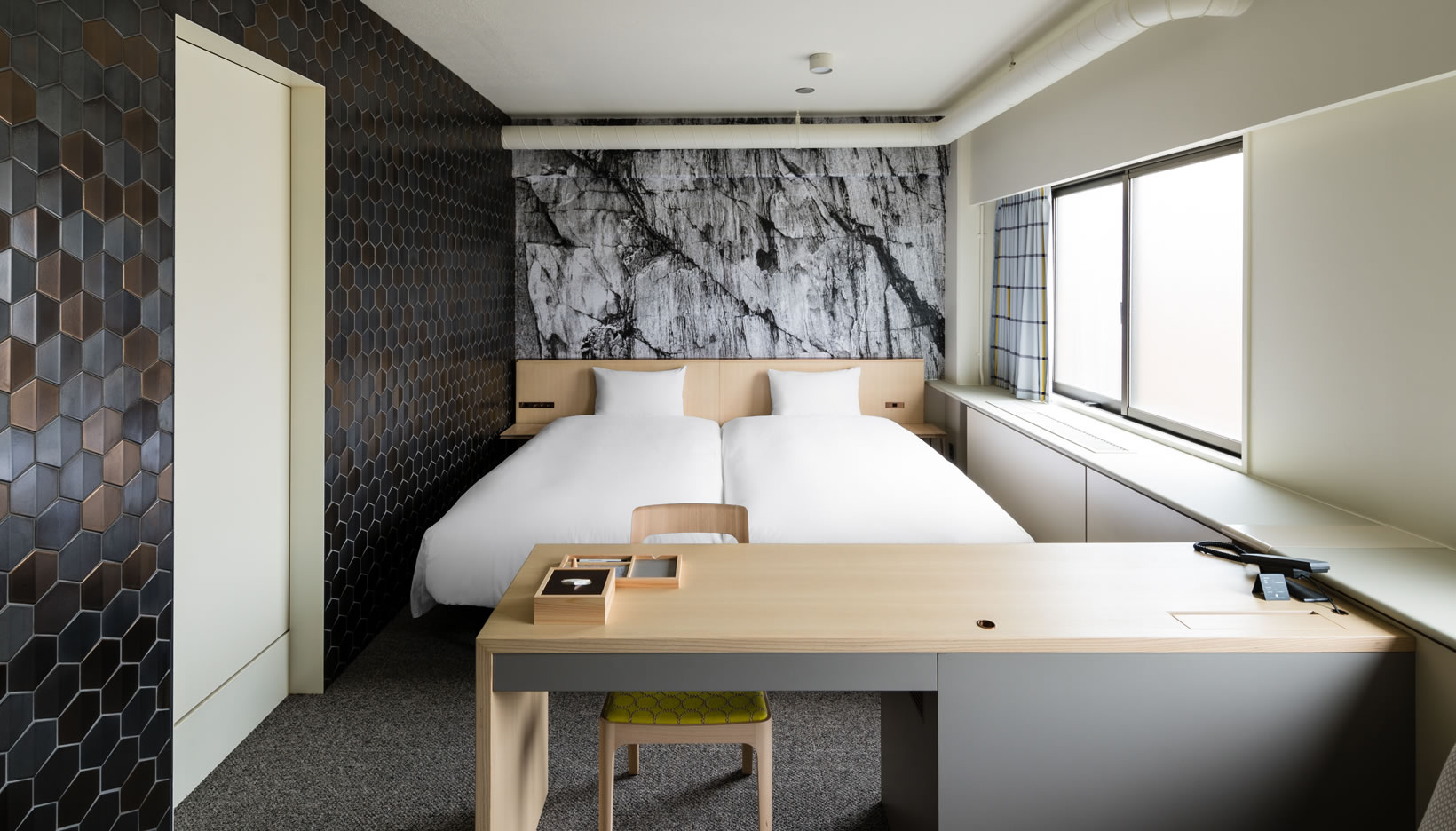 Stepping into Hotel Anteroom feels like discovering a hidden chapter of Kyoto’s contemporary narrative. Occupying a thoughtfully repurposed 1920s student hostel near Kujo Station, the hotel balances minimalism with artistic expression. Its architecture retains the integrity of the original structure while stripping back unnecessary ornamentation, allowing light, texture, and art to define the mood. The pared-back lobby sets the tone—part gallery, part social hub. Here, an exhibition space shares walls with a cozy bar and a breakfast room bathed in morning light. It’s less a grand arrival and more an invitation: enter quietly, linger, and let the atmosphere unfold.