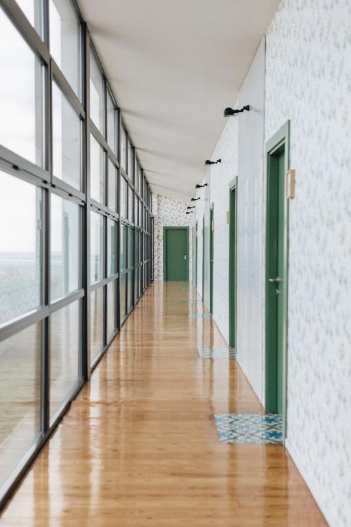 Guest rooms are bright, thoughtful, and full of character. Light wood floors and sleek industrial lighting provide a modern canvas for saturated hues and unexpected design details. One wall is all window, flooding the space with sunlight and unbroken vineyard views. For travelers looking to stretch out, the junior suites offer added space with the same bold yet serene style.