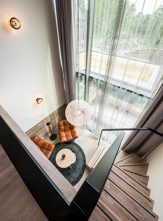 Each room is a unique composition of vintage finds and bespoke pieces from design houses like Moooi, Zuiver, HK Living, Kave Home, and Ferm Living, resulting in an ambiance that’s both intimate and quietly luxurious. From the pared-back suites in the attic to light-filled duplexes with arched windows, this is modern Amsterdam cool with a sense of reverence.