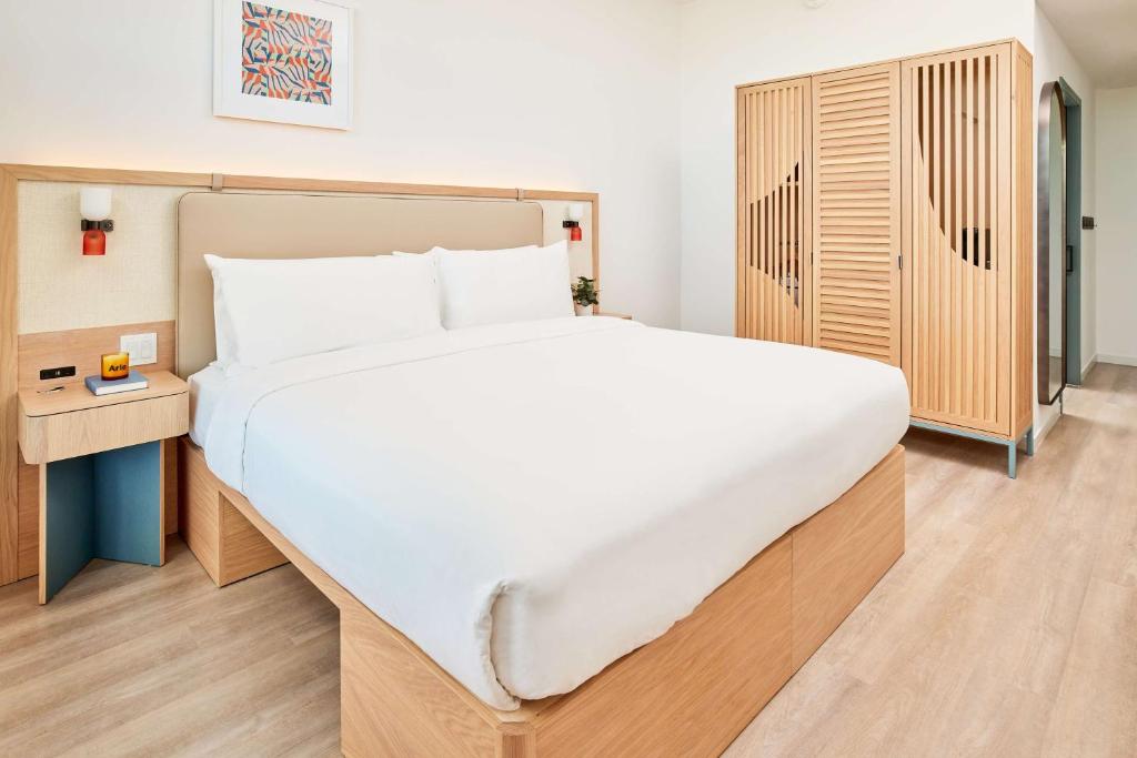 Minimalist yet magnetic, the rooms at Arlo Wynwood offer a sanctuary above the streets. Large windows frame murals and city views, bringing Wynwood’s dynamism inside while soft palettes and natural textures create a calming counterpoint. Smart tech, plush beds, and thoughtful details make the rooms practical as well as stylish, while the overall vibe remains distinctly Miami—bright, bold, and effortlessly cool.