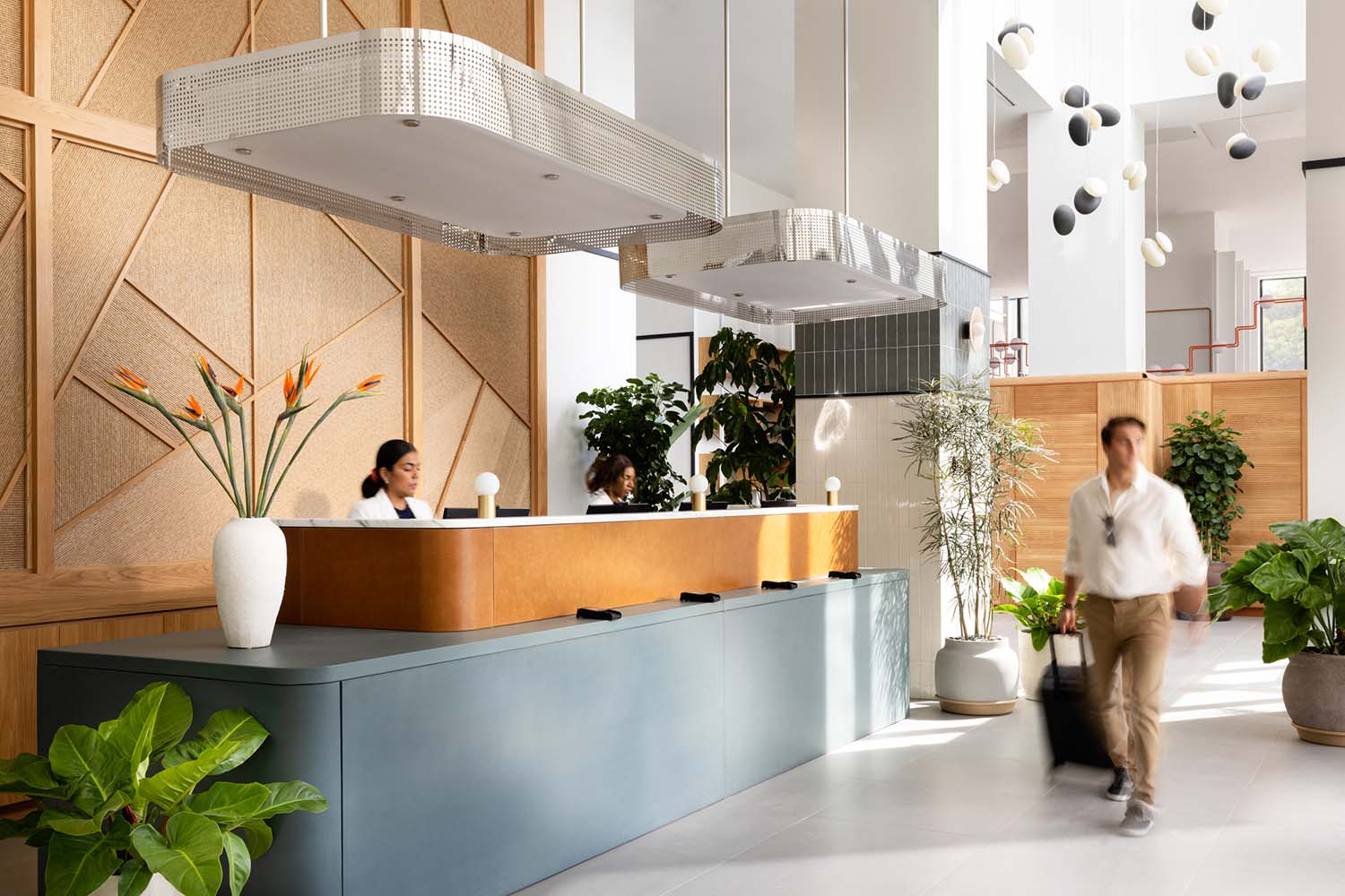 Created by New York–based studio Meyer Davis, Arlo Wynwood’s aesthetic is equal parts raw and refined. Exposed concrete, steel, and glass recall the neighborhood’s industrial roots, while warm wood, textured fabrics, and lush greenery infuse softness and soul. And because Wynwood is a district where art spills into the streets, Arlo mirrors that energy inside: curated works by local and international artists turn walls, halls, and corners into canvases. Step into the lobby and you’ll find yourself in a living gallery, where every surface is part of the story.