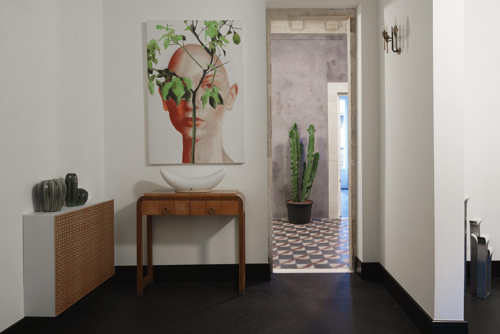 The hotel extends its creative ethos far beyond the guestrooms. Corridors transform into curated galleries, hosting temporary exhibitions of Sicilian artists, installations, and multimedia storytelling. Even the staircases and balconies become stages—art and architecture entwined, celebrating Catania’s identity as a city of reinvention. Here, every hallway is an allegory, every object an invitation to imagine.
