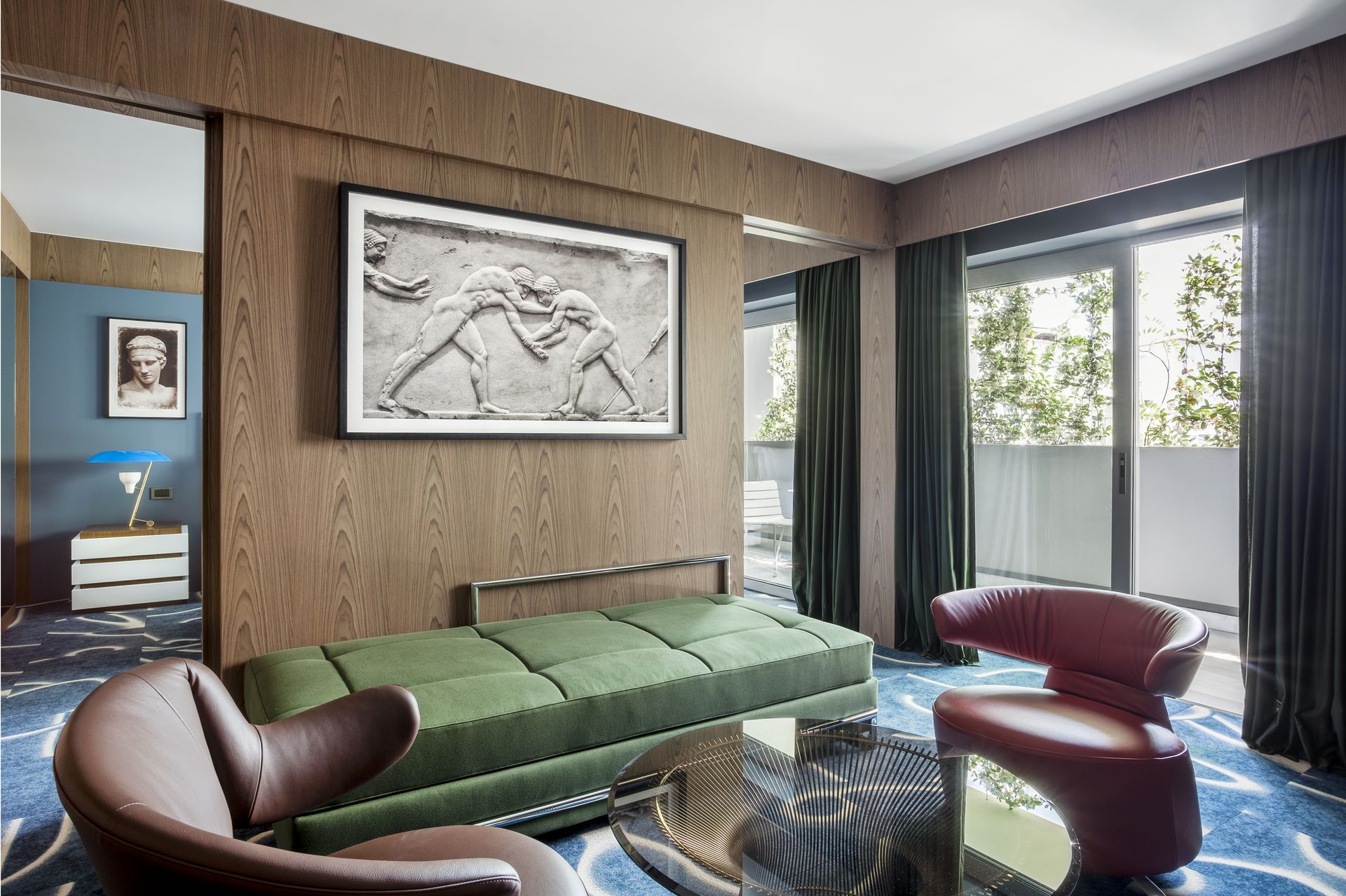 AthensWas isn’t trying to reinvent Athens. Instead, it refines it—through a lens of Greek Classic Modernism. From the polished marble floors to the walnut-paneled walls, every surface and line reflects an era when elegance meant clarity, proportion, and quiet confidence. Franco Albini chairs, Le Corbusier pieces, and Ettore Sottsass accents sit easily beside Greek marble and walnut, proving that modernism—done well—never ages. The street-level restaurant and bar, open and airy, feels as much like a gallery of good taste as it does a gathering spot.