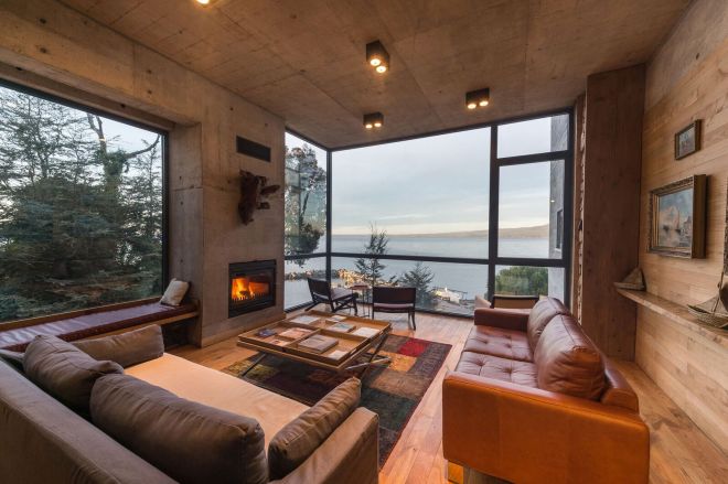Inside, Fuentes marries minimalist modernity with regional soul. Warm wood textures and traditional textiles bring a cozy softness to the sleek concrete shell. It’s a timeless balance—contemporary architecture that still feels deeply local, where every material and detail reflects the spirit of southern Chile.