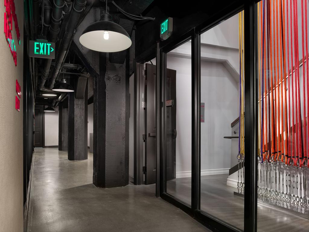Inside a century-old building with cast-iron details and wide bay windows, Axiom Hotel tells a new kind of tech-meets-vintage story. Clean lines, digital artwork, sleek furniture, and subtle lighting give the space a minimalist edge, while playful touches—like glowing hallway floor lights and smart mirrors—remind you this isn’t your typical boutique stay. The aesthetic is contemporary without being cold, with clever winks to both the past and the future.