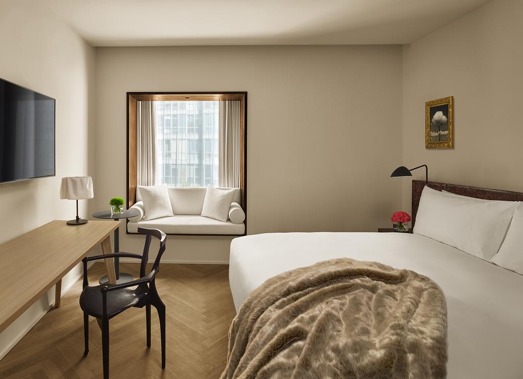 Inside, Schrager’s signature brand of understated luxury meets Barcelona’s heritage head-on. The double-height lobby fuses contemporary and classic design in surprising harmony: Eric Schmitt, Christian Liaigre, and nods to Dalí and Gaudí sit side by side, creating a visual language that’s both global and local, dramatic and intimate.