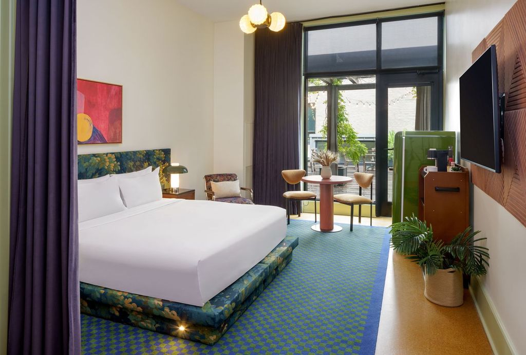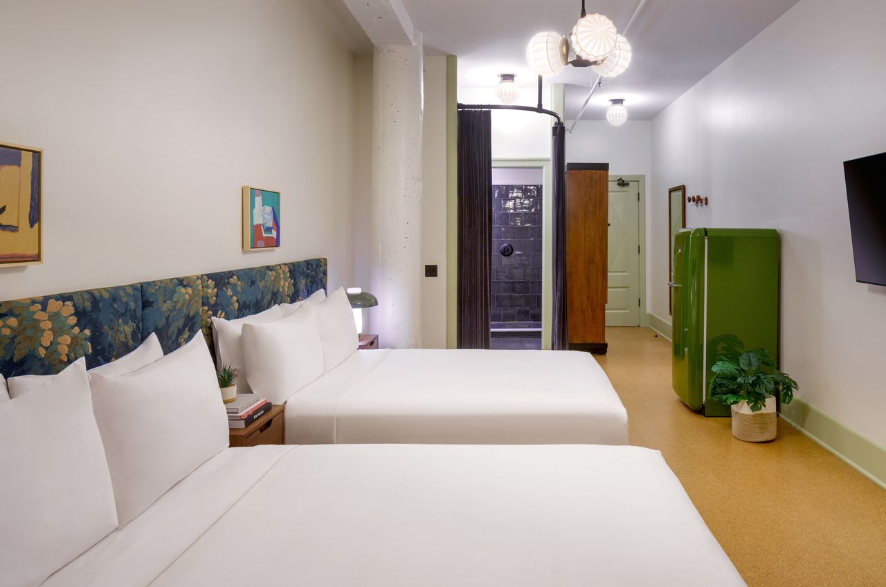 There’s no city in America that metabolizes history the way New Orleans does — and The Barnett is proof. Formerly the hip Ace Hotel, this 1928 Art Deco landmark originally opened as Barnett’s Furniture Store, a beloved mom-and-pop institution with deep neighborhood roots. Today, reimagined as a boutique-style property in the Warehouse District, The Barnett holds onto the bones, the soul, the swagger — while shedding every trace of played-out hipster tropes. The original terrazzo floors are intact, grounding the lobby in architectural honesty, while an eclectic constellation of custom and vintage lighting warms the volume of the space rather than performing for attention. It’s design that is quietly confident, not screaming for the algorithm.