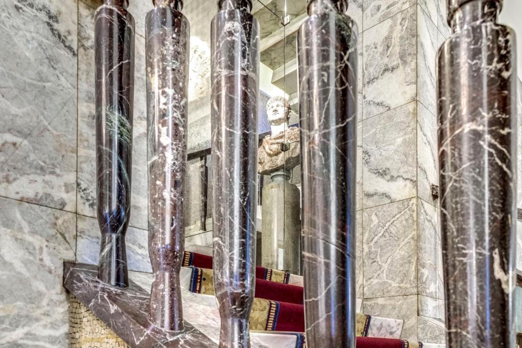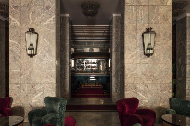 Inside, the hotel unfolds like a grand film set caught between New York and Rome. Influences of 1930s Manhattan and streamlined nautical design meet rich Italian craftsmanship. Think walnut-paneled walls, glossy marbles, sweeping staircases, and mosaics telling Homeric tales. The aesthetic is neither minimalist nor overtly decadent—rather, it’s dramatic, confident, and immaculately curated.