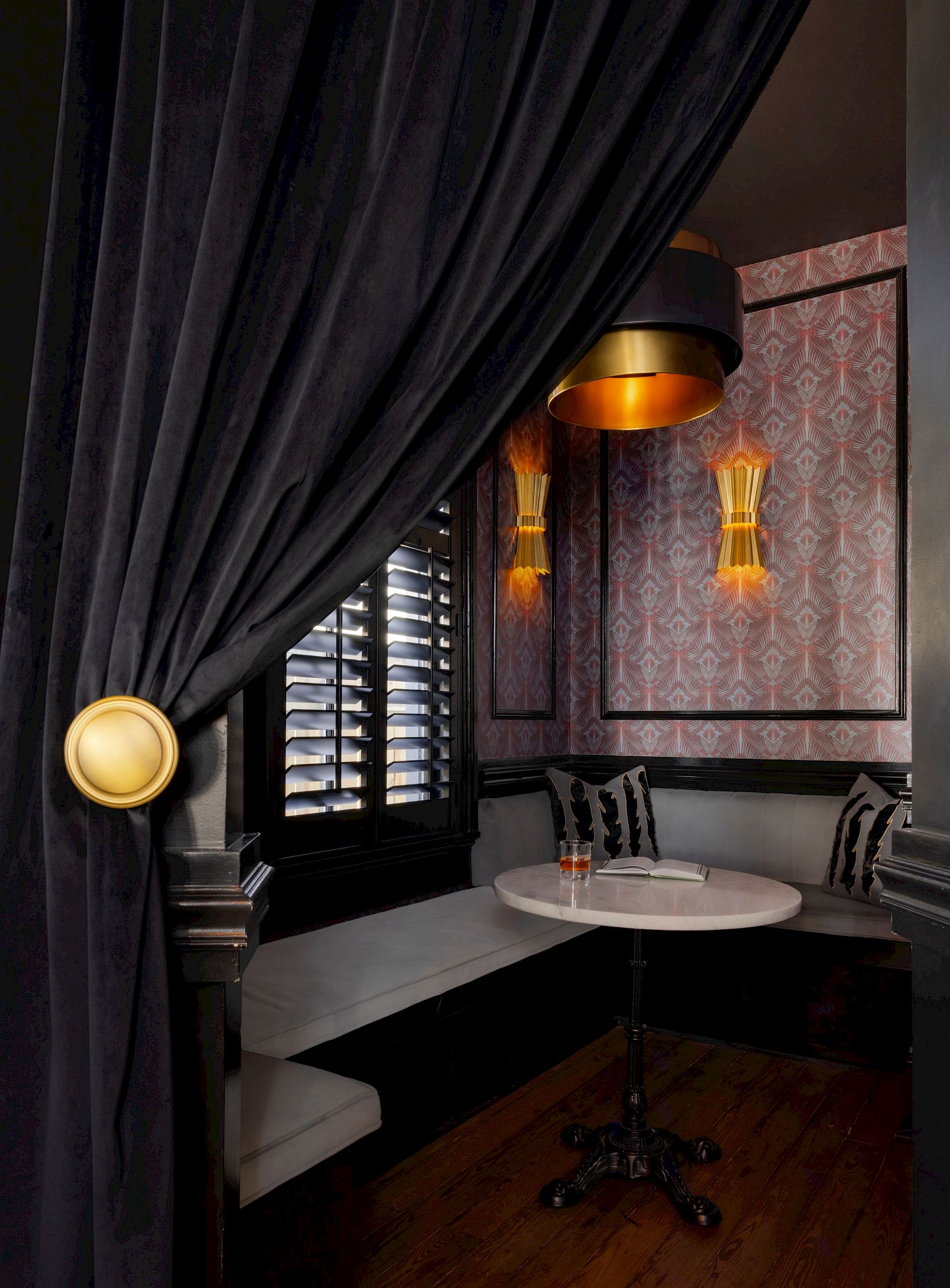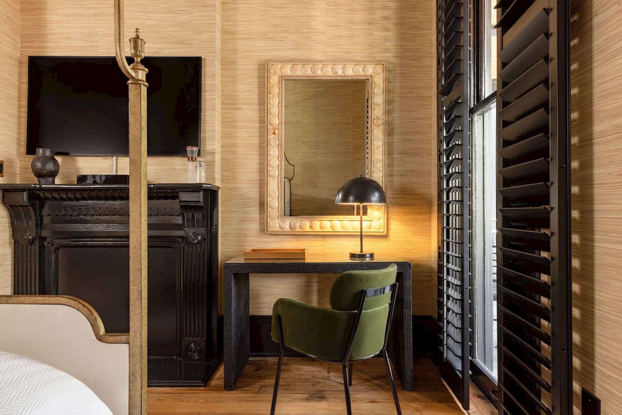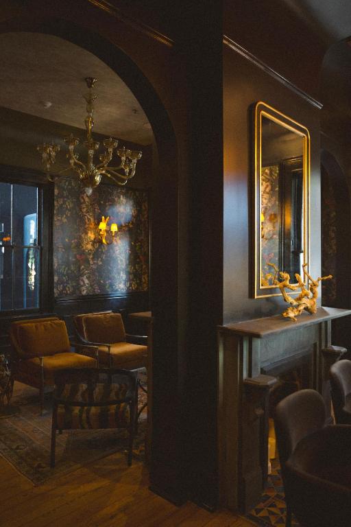 The design walks a line between Uptown refinement and the layered romance of the French Quarter. Inside, warm lighting and richly textured wallcoverings envelop the lobby, while curated vintage pieces and tactile finishes give each corner a sense of place. Every guestroom is unique, reflecting the individuality of the surrounding neighborhood’s historic homes—united by a palette of deep tones, soft light, and understated elegance.