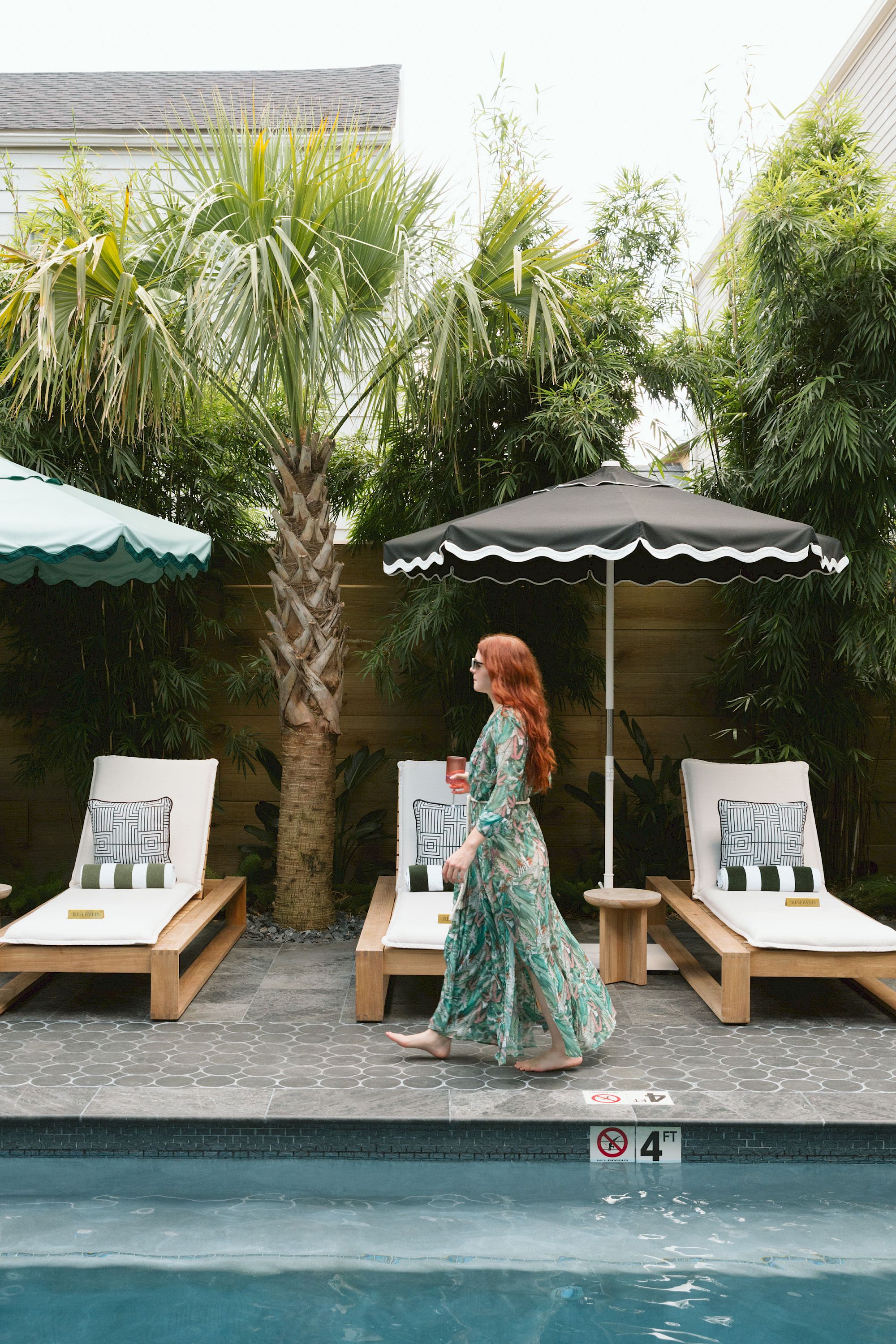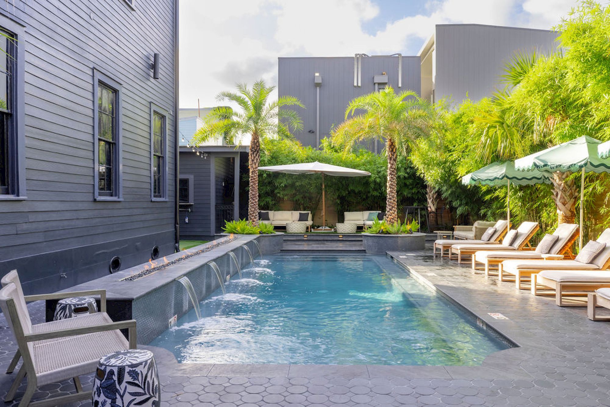 At the core of the hotel, a serene courtyard frames an outdoor pool whose reflective surface cuts a striking figure against lush greenery. The adjoining Pool Bar offers cocktails and light café fare from morning until the last blush of golden hour, making it as inviting for a quiet solo coffee as for a lively pre-dinner drink.