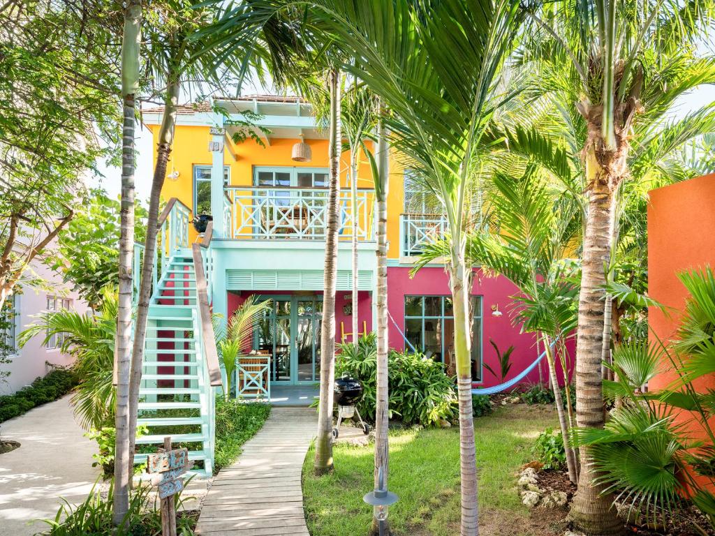Tucked just behind Palm Beach’s golden stretch, Boardwalk Boutique Hotel Aruba is the kind of place that makes you exhale the second you arrive. Once a working coconut plantation, this family-owned hideaway has evolved into one of Aruba’s most soulful stays—a kaleidoscope of color, calm, and Caribbean warmth. While big resorts buzz nearby, Boardwalk hums to its own rhythm: relaxed, authentic, and deeply personal.
