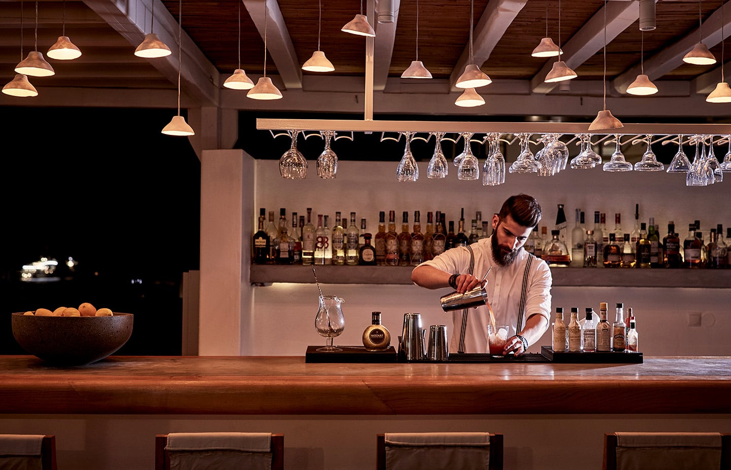 The pool deck is BOHÈME’s social heart: an infinity edge spilling toward the sea, beanbags scattered like punctuation, linen daybeds that seem permanently drowsy. The Bilo Bar hums quietly in the background, serving unfussy cocktails and dishes that lean into local flavor without turning it into theater. No velvet ropes, no fanfare—just rhythm and restraint.
