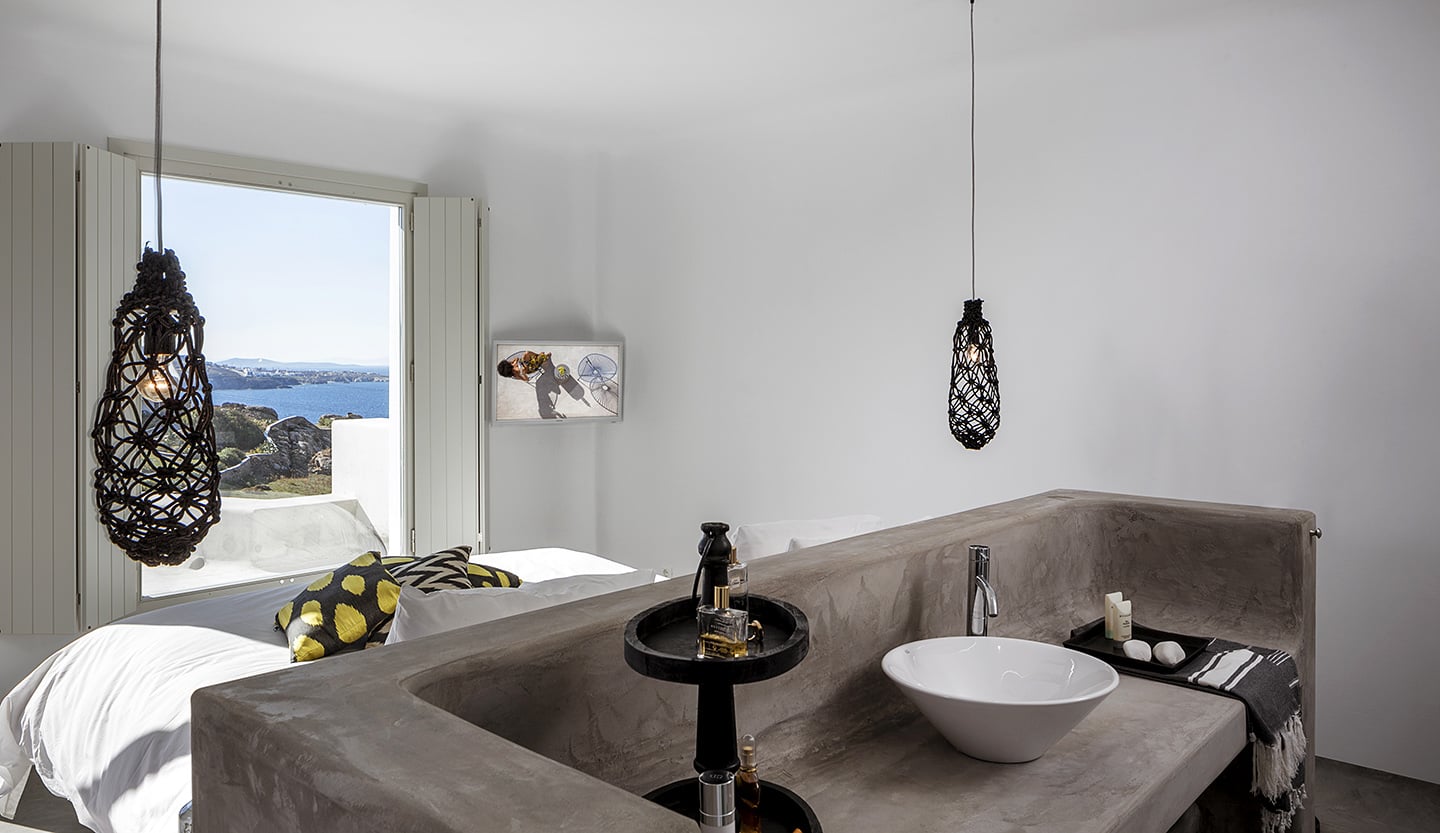There are only 27 suites, and not one of them feels anonymous. Think white-on-white palettes layered with warm stone, weathered timber, and just enough saturated color to keep things from slipping into monotone. Furniture is low-slung and sculptural, bathrooms are sharp-edged and cool to the touch—marble, brushed steel, nothing extraneous. Every suite has its own outdoor space—balconies, terraces, or plunge pools—that frame the Aegean like a painting. Sunsets here don’t just happen; they feel staged.
