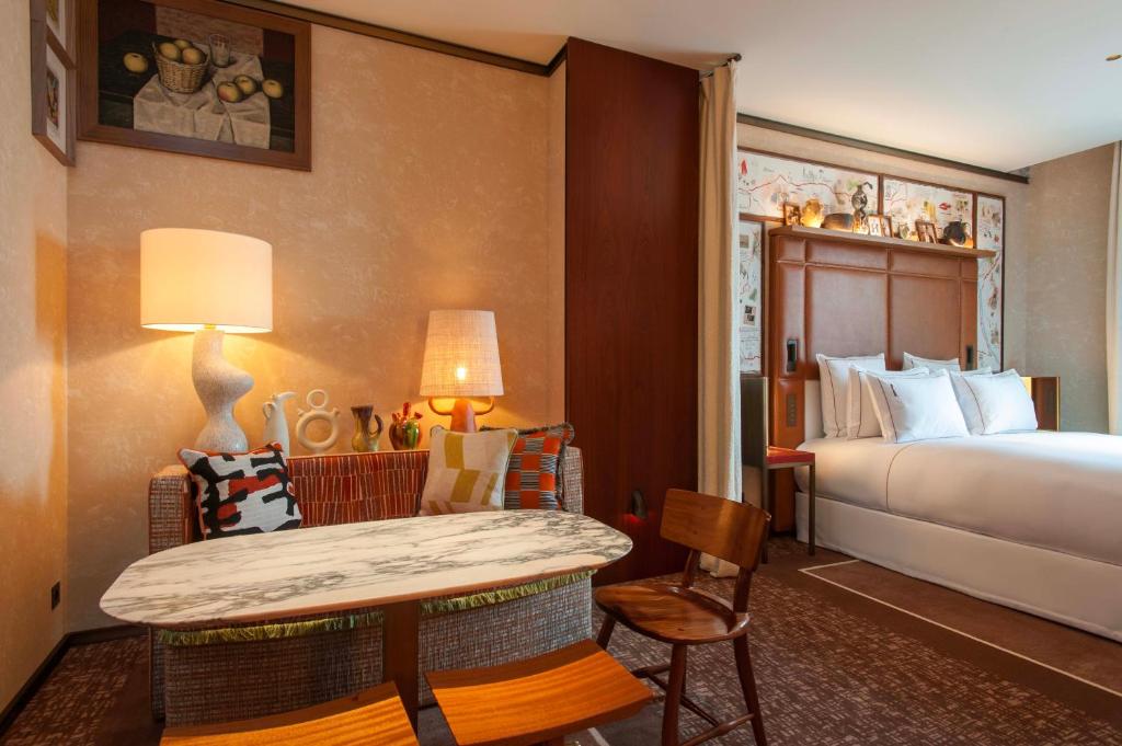 From lobby to suite, BRACH unfolds as a tactile world. Clay pottery, soft leathers, weathered woods, and hand-curated art converge in interiors that are both intimate and expansive. This is not sterile five-star design—it’s hotel as habitat, built for lingering and low-lit conversations over great wine. Guest rooms range from compact hideaways to skyline-facing suites, each one unique, every one deeply considered. Forget cookie-cutter—this is curated comfort, wrapped in earthy tones and subtle sensuality.
