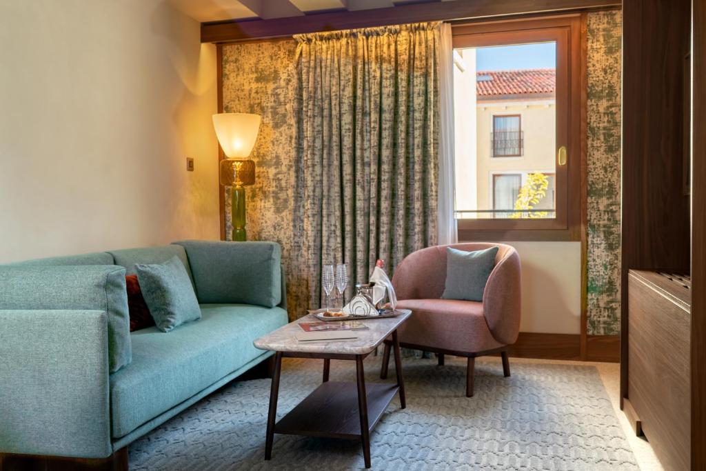 Step inside and you’re greeted by soft light, arched stone, and a calm palette that feels in dialogue with the lagoon just outside. Bathrooms are swathed in Rosso di Verona marble, while walls shimmer in seafoam and lagoon-green tones—textiles that echo the hues of the canals. Murano glass lamps, custom-designed with a subtle Art Deco touch, glow like captured sunlight, elevating every room with intimacy and sophistication.