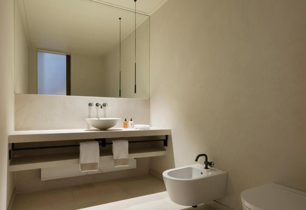 The design is a masterclass in modern Mediterranean style—think rustic beams, contemporary art, soothing neutral tones, and flashes of local craftsmanship. The 32 rooms and suites are calm, light-filled sanctuaries, many with private terraces or garden views.