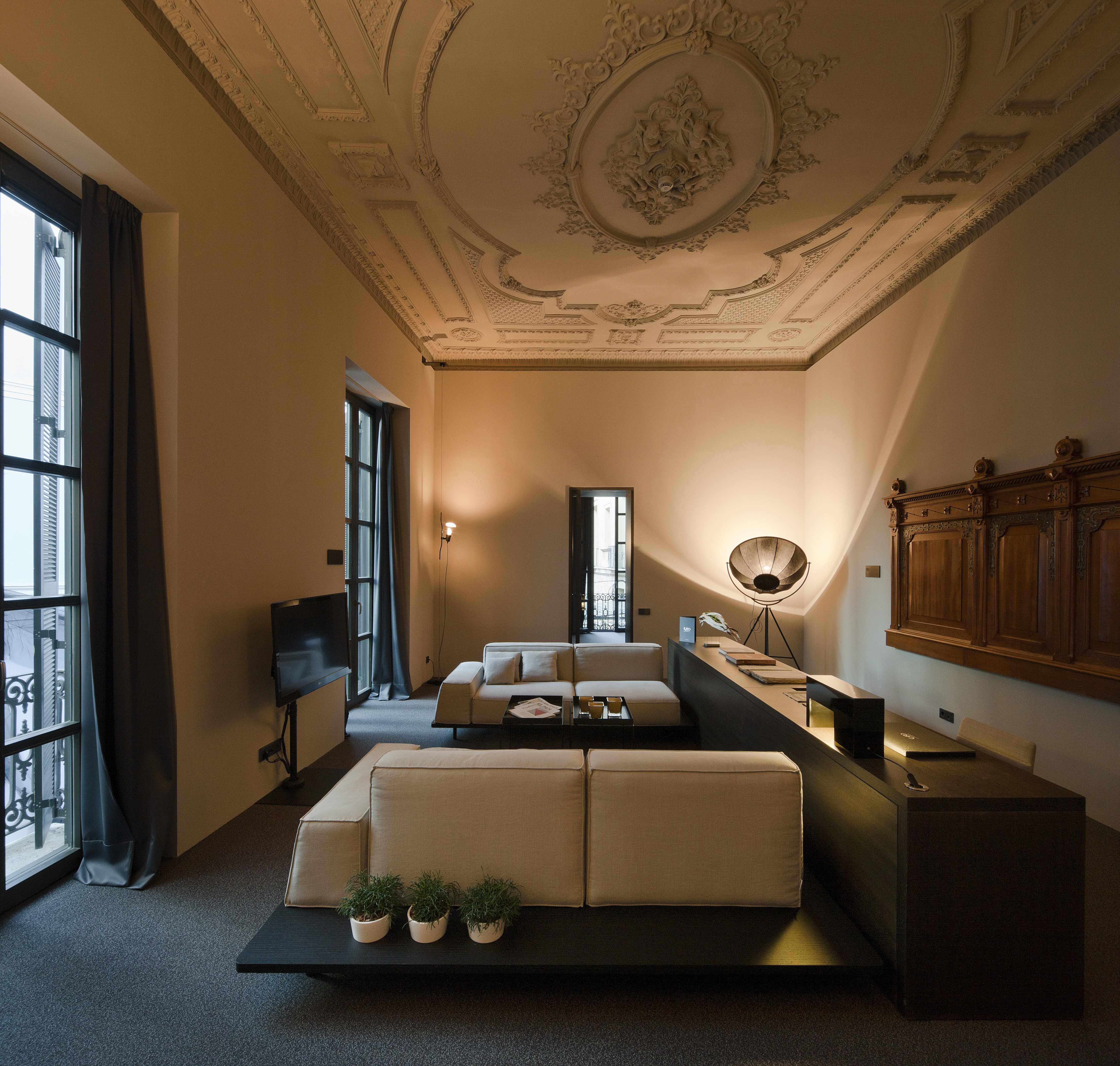 Rifé’s design philosophy manifests in subtle interventions that honor what was by embracing what is. Minimalist geometry frames ancient materials; linear oak detailing warms the coolness of limestone; lighting is discreet, sculptural, reverent. Every surface and shadow feels intentional—a study in restraint, where nothing competes with the centuries-old architecture. Instead, new and old breathe together, their tension creating an atmosphere of deep calm and sophistication. The result is a museum you can live in—but one that feels far from austere.