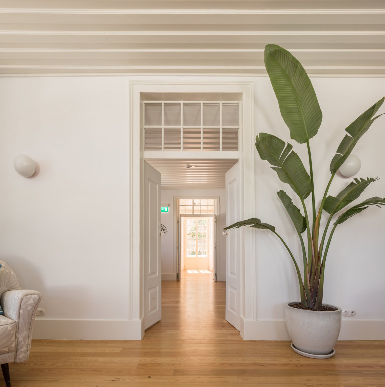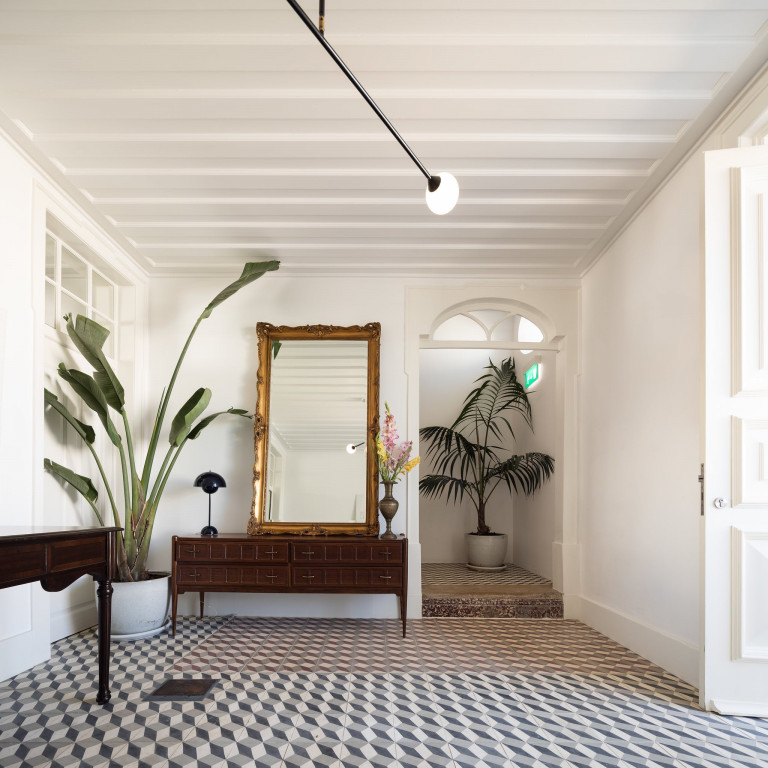 Casa Mãe unfolds as a small village within the city—34 rooms spread across three distinct settings: a lovingly restored 19th-century house, a collection of sleek concrete cabanas, and pared-back garden suites surrounded by orchard paths and vegetable beds. Each space tells its own story, but all share a language of restraint, texture, and authenticity. Inside, the aesthetic is an elevated simplicity: crisp white walls, natural wood, woven baskets, and handmade ceramics sourced from Portuguese artisans. Terracotta Santa Catarina tiles, linen drapes, and handwoven textiles add warmth and tactility to the serene palette. High ceilings and generous windows flood the rooms with natural light, creating an atmosphere that’s both calming and profoundly human. This is not design for show—it’s design that breathes, that connects you to place and craft in every quiet detail.