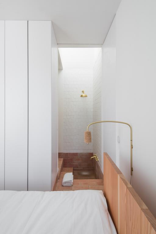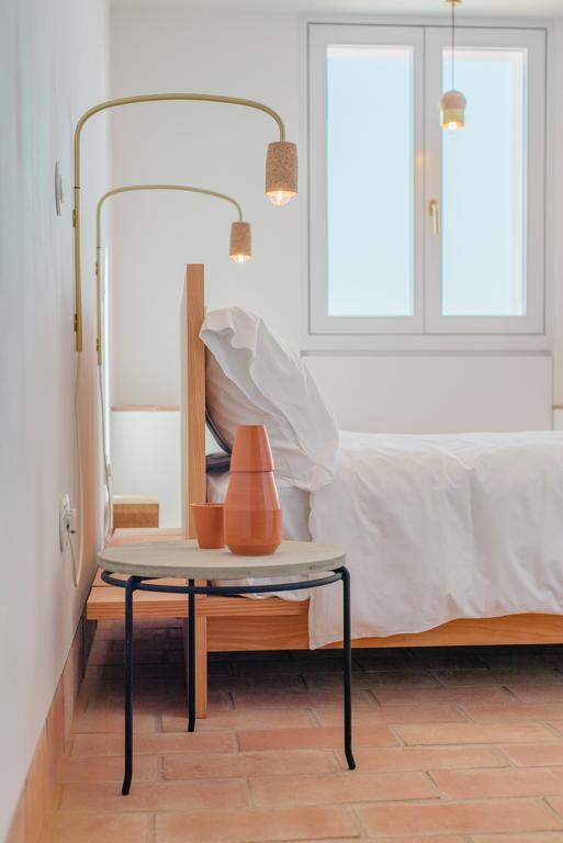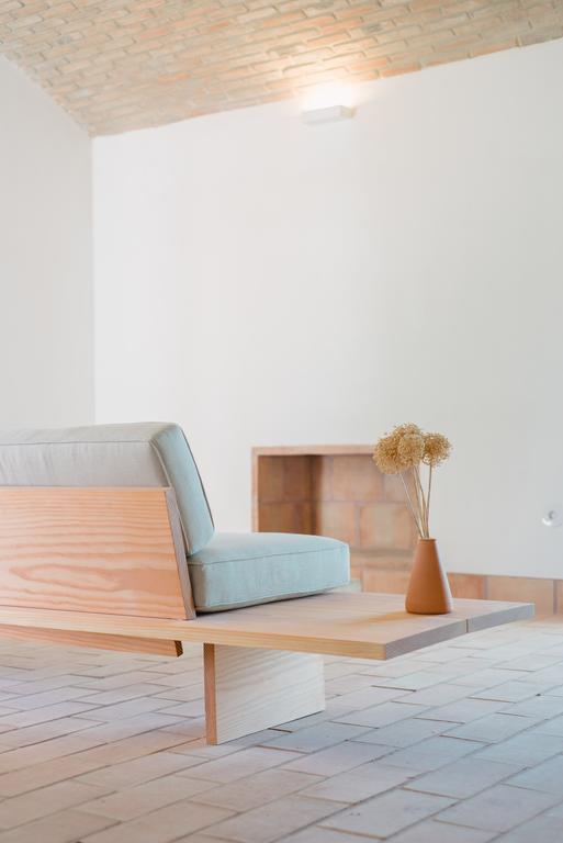 From the outside, Casa Modesta’s clean, cubic silhouette nods to Portugal’s vernacular architecture—whitewashed, grounded, and simple. Step inside, and tradition greets you in modern form: vaulted brick ceilings, warm terracotta underfoot, and handcrafted cedar furniture that speaks to the local craftsman’s hand. Lighting is bespoke, made from cork and brass, and every material tells a story of place. The overall effect? Minimalism, yes—but never sterile. It’s design steeped in memory, elegant yet deeply humane.