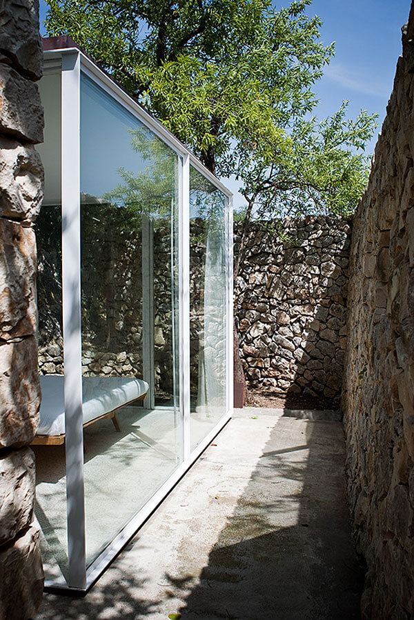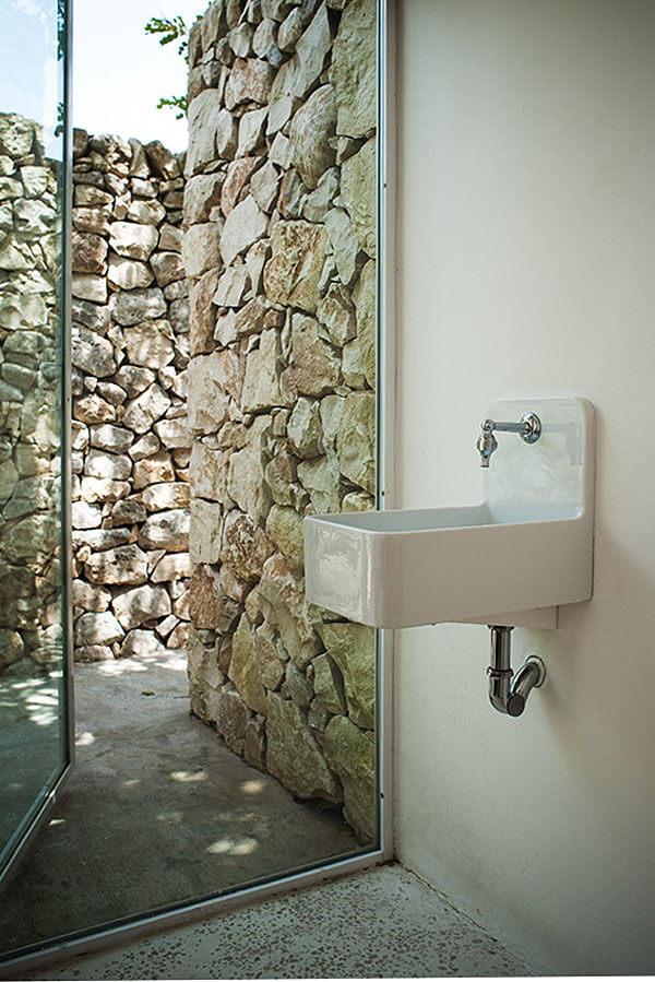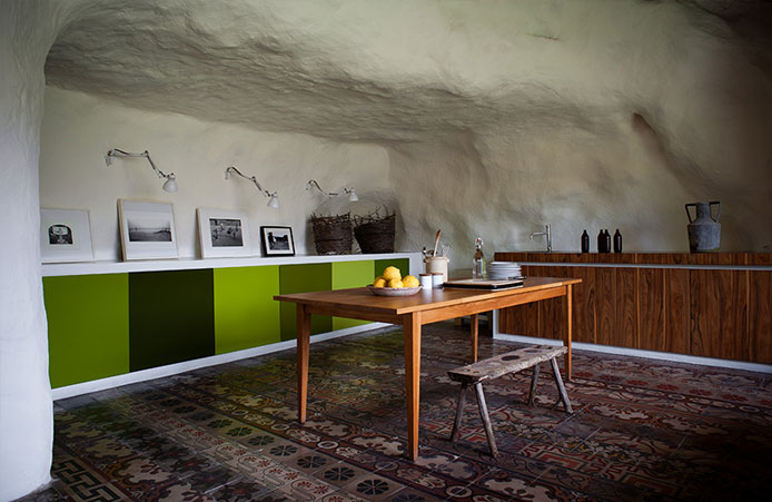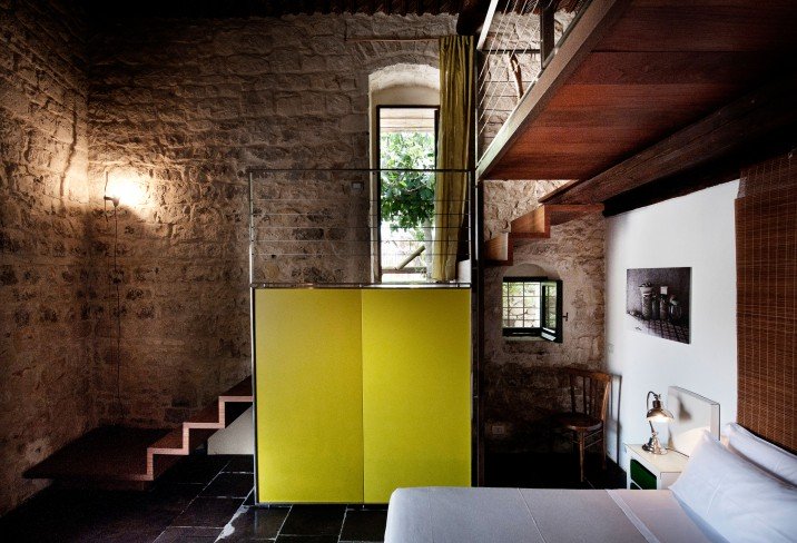 Casa Talía’s beauty lies in its quiet authenticity. The ensemble of small houses—linked by cobbled paths, arched doorways, and intimate terraces—forms a miniature village within a village. The design embraces bioclimatic principles, where thick stone walls, lime plaster, and cane-covered roofs naturally regulate temperature, allowing the interiors to remain cool in summer and warm in winter. The palette is earthy and elemental: ochre stone, indigo tiles, terracotta floors, and the gentle greens of olive trees. Each room has its own entrance from the lush Mediterranean garden, creating a sense of privacy and flow—a rhythm of retreat and discovery. It’s architecture that doesn’t impose; it whispers, blending seamlessly into the terraced hillside and the sun-drenched skyline of Modica.