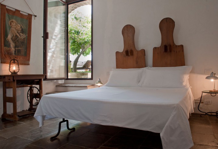 Inside, Casa Talía balances minimalism and memory. Local artisans have crafted much of the furniture from reclaimed wood and iron; colorful Sicilian tiles punctuate the rooms with bursts of joy. Soft fabrics, handwoven rugs, and simple ceramics reflect the tactile beauty of Sicilian daily life. Each detail is intentional, from the cane ceilings to the limewashed walls—a composition of elements that feels as natural as it does refined. It’s design not for display, but for living.
