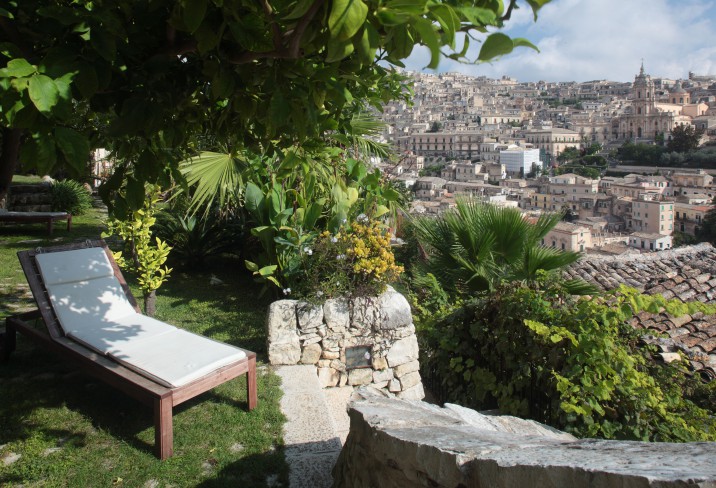 At the center of Casa Talía lies its heart: a Mediterranean garden fragrant with jasmine, fig, and wild herbs. Here, guests lounge in hammocks, read under canopies of vine, or cool off in an outdoor shower between lemon trees. Deckchairs and shaded nooks invite languid afternoons, and breakfast—served beneath a fig tree or in the cozy breakfast room—feels like an act of daily poetry. From this verdant haven, the panoramic view of Modica unfolds in cinematic layers: domes, terraces, and a cascade of warm limestone facades. The scene changes with the light—at dawn, bathed in honey; at dusk, glowing amber.