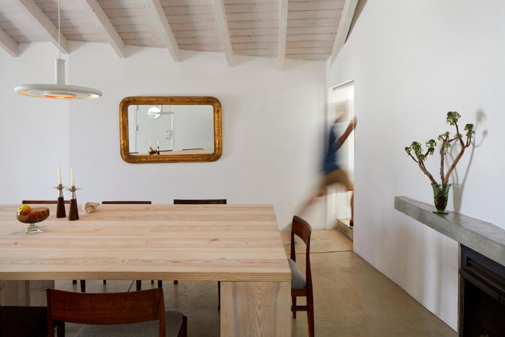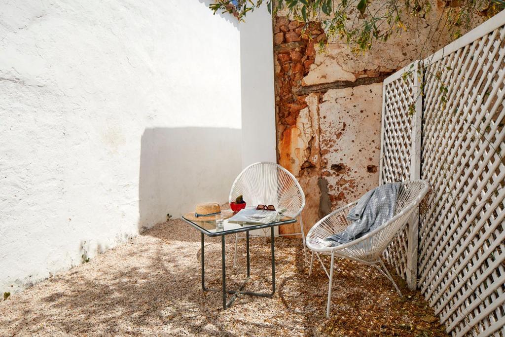 Buildings here are not overworked. They are edited. Rustic bones remain — limewash, rough stone, simple volumes — but contemporary gestures bring intentionality: clean-lined details, quiet furniture moments, a design language that is modern in spirit yet deeply local in expression. The garden is lush and protective, a green room between house and horizon, with a pool that feels less like a feature and more like a natural clearing. It all feels like it always belonged — which is the highest compliment one can give a renovation.