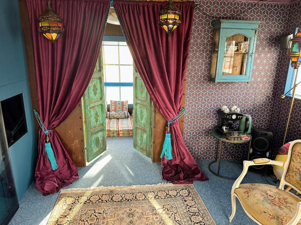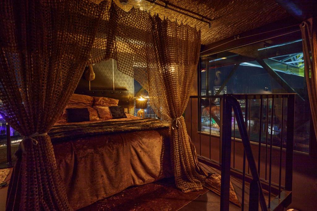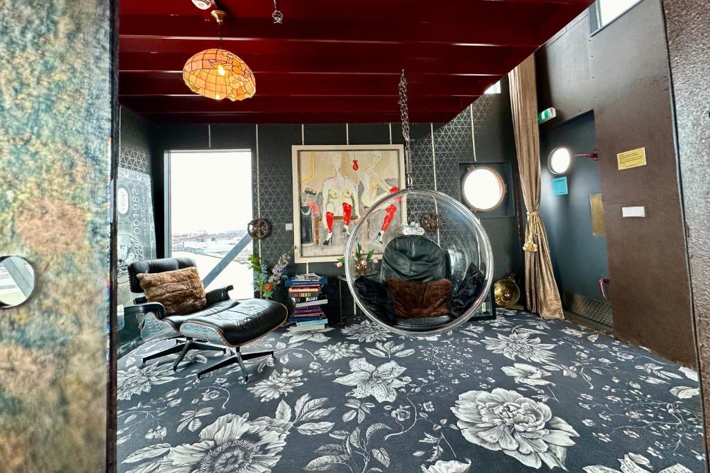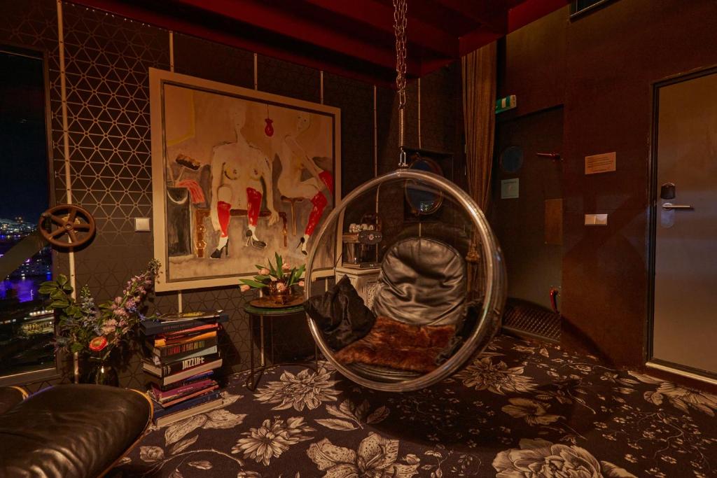 Towering 35 to 45 meters above the IJ waterfront, the Faralda Crane Hotel is not your average boutique stay—it’s an engineering marvel turned luxury hotel, perched atop a former shipbuilding crane in the gritty-chic NDSM Wharf. Accessible via a panoramic lift, each of the hotel’s three duplex suites delivers cinematic views over the river and Amsterdam’s skyline, especially at sunrise and sunset, when the city glows in warm, golden light. Inside, the suites are unexpectedly plush—opulent, theatrical, and richly layered, with decadent fabrics, moody lighting, and a surreal sense of being somewhere entirely apart from the world below.