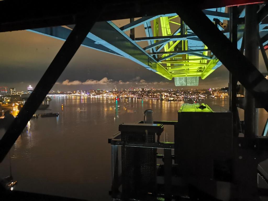While the suites offer an intimate, near-silent retreat in the clouds, the creative energy of the NDSM neighborhood hums just below. From open-air festivals and street art to edgy cafés and vintage markets, this post-industrial zone is one of the city’s most vibrant cultural hubs—a stark yet satisfying contrast to the crane’s private luxury. And then there’s the pièce de résistance: a rooftop jacuzzi, dramatically perched atop the crane, offering guests the rare experience of soaking under the stars with the city sprawling beneath them.