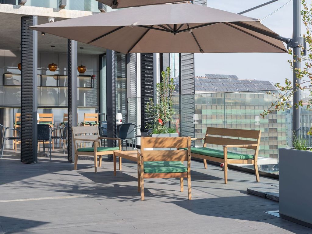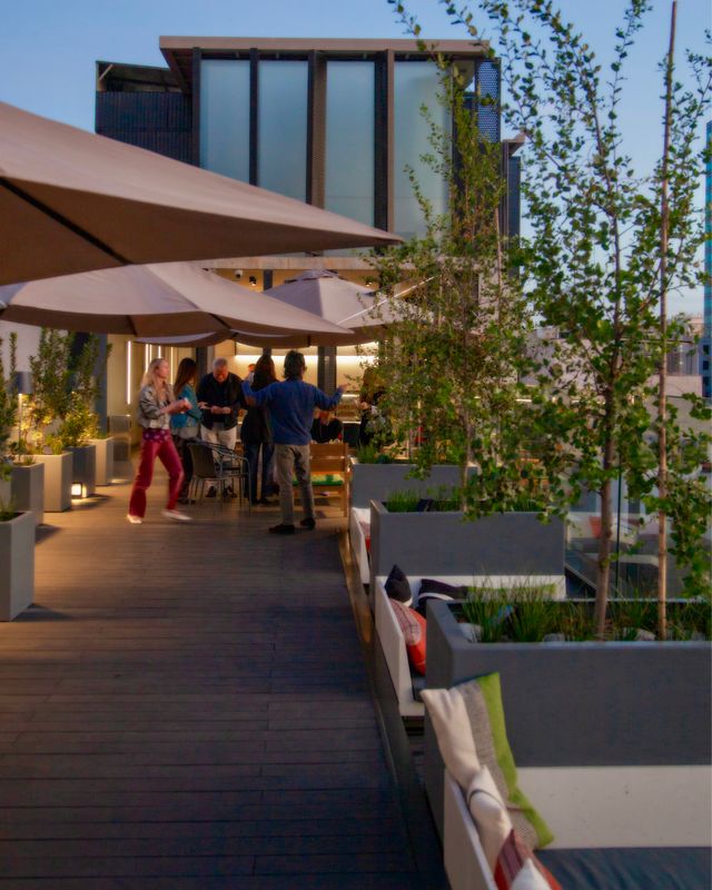 Vibe: contemporary classic, eco-conscious design hotel, quiet, rooftop bar, singular penthouse suite