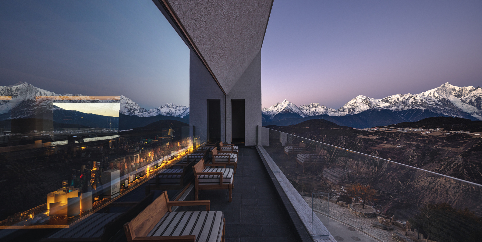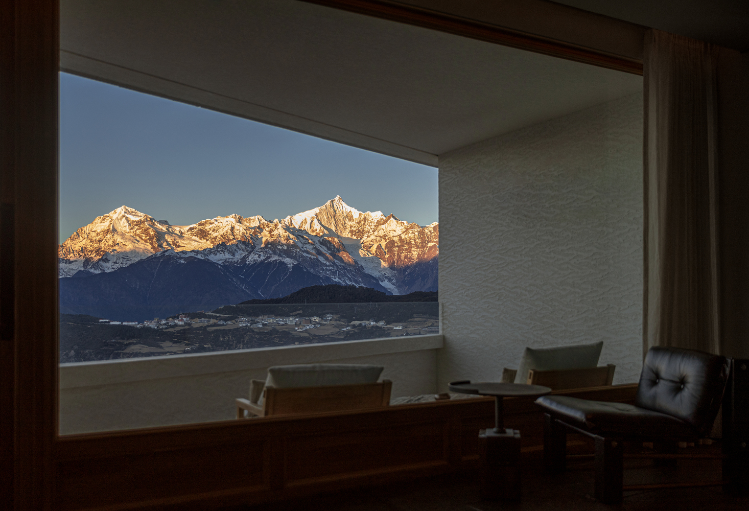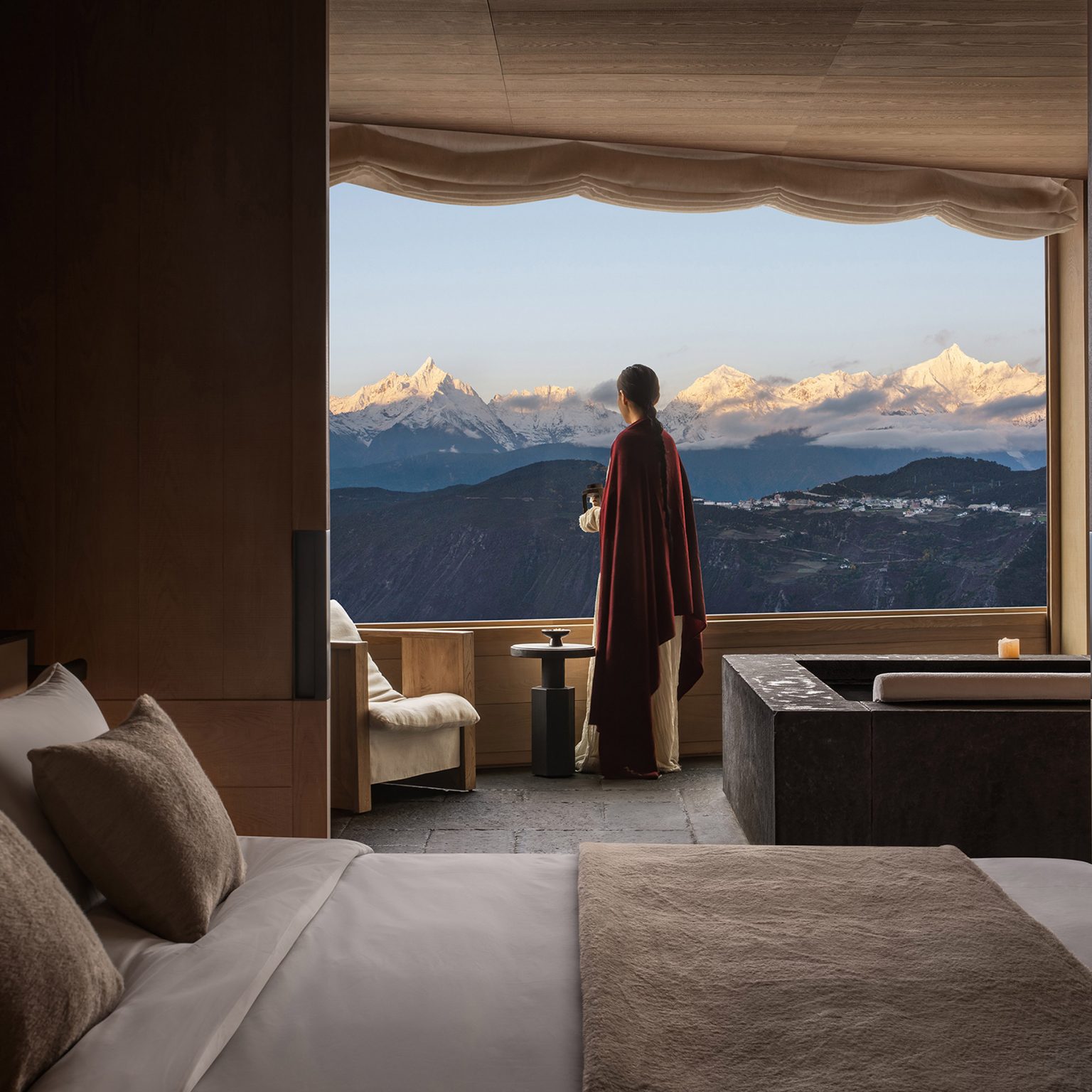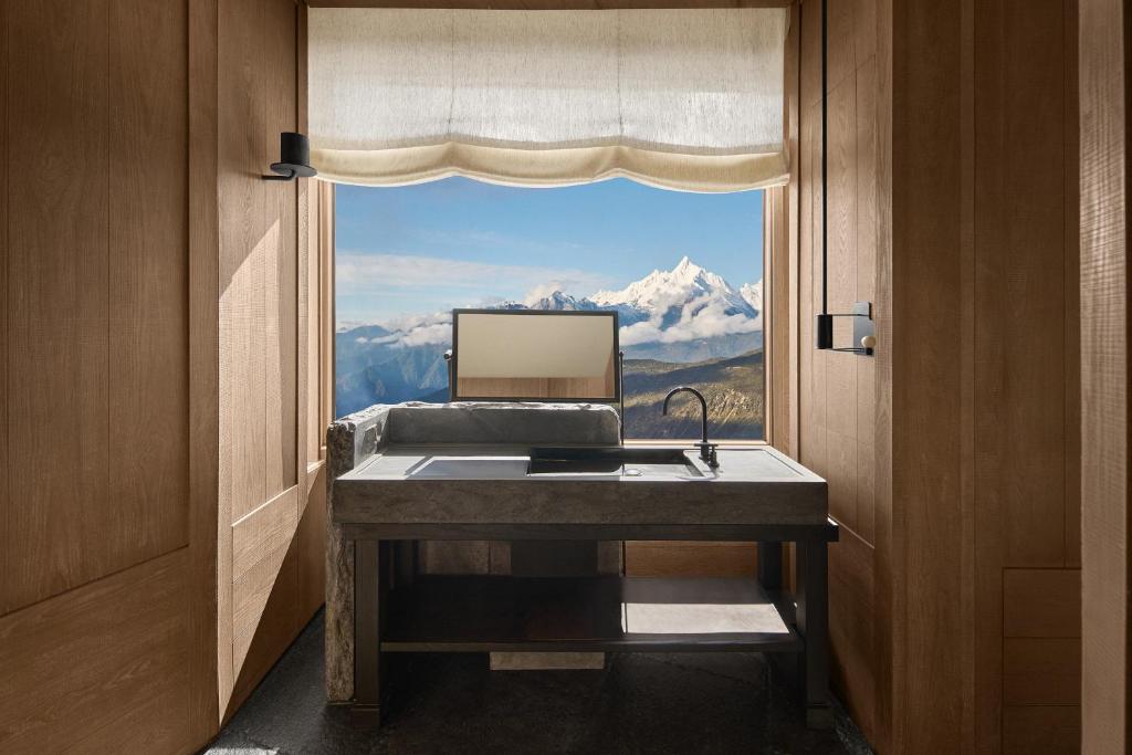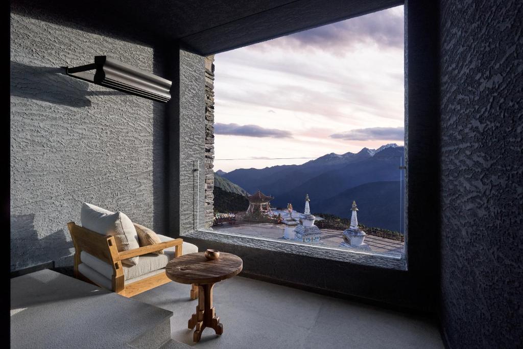 Guestrooms are designed as sanctuaries of stillness and spectacle. Floor-to-ceiling windows ensure that every sunrise over the Meili Snow Mountains feels like a private ceremony. Interiors are understated yet soulful, defined by natural textures, handcrafted furnishings, and a neutral palette that lets the views steal the show. The effect is serene but never sterile: each room becomes an observatory of clouds, peaks, and shifting light.