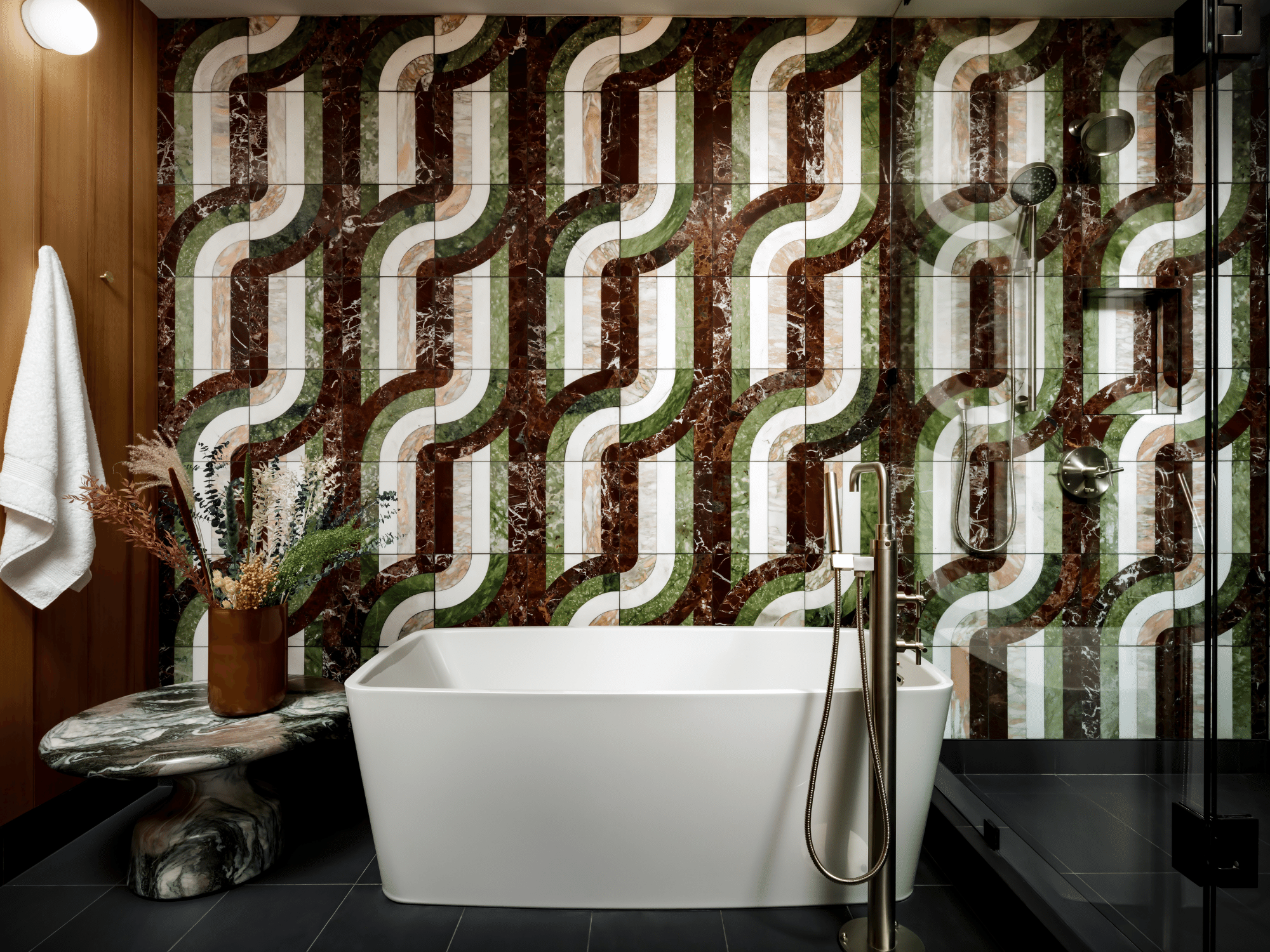 Each of The Drake’s rooms is its own vignette, layered with tactile materials, quirky furnishings, and curated mini-bars. Comfort is always present, but never at the expense of personality. The result is stylish yet unpretentious, intimate but never precious. For the full Drake immersion, the Rooftop Suite channels downtown fantasy: a Memphis-inspired living space, an art deco bathroom with soaking tub, and a sprawling terrace overlooking the city skyline. It’s part penthouse, part playground.