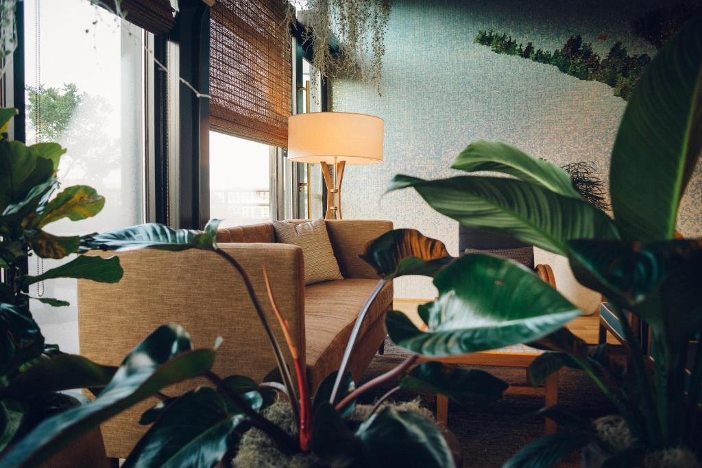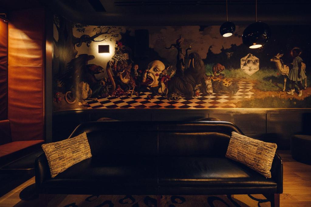 Inside, exposed concrete, amber lighting, and rich wood tones form the backbone of the aesthetic, softened by lush textiles, vintage furniture, and art that feels personal rather than polished. The lobby—anchored by a sunken lounge and an ever-changing art installation—feels like the living room of a design magazine editor who also happens to run a cultural movement.