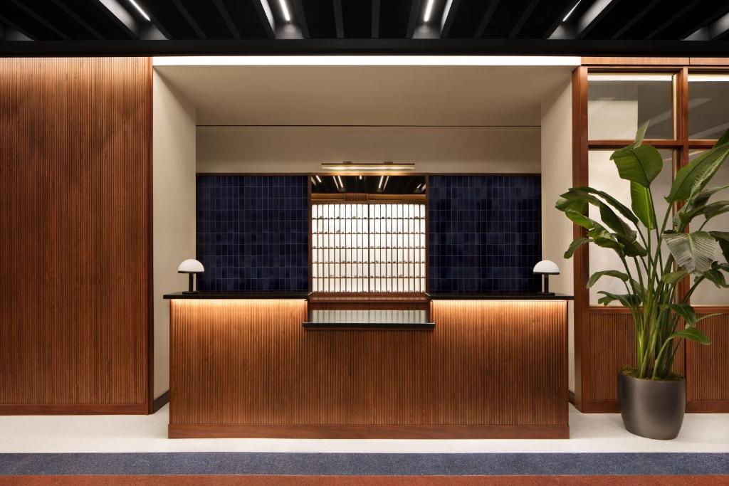 Eaton DC occupies a brutalist-era office building originally constructed in the late 1960s, whose angular concrete façade has been thoughtfully preserved—a nod to Washington’s architectural evolution. Rather than erasing its past, the redesign by Parts and Labor Design embraces it, transforming the rigid geometry of bureaucratic modernism into something human, warm, and profoundly expressive.