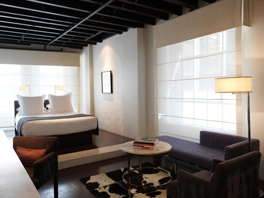 With just 31 rooms, including two penthouses, the Establishment offers intimacy with a polished edge. Interiors are minimalist but warm: marble bathrooms, velvet sofas, tactile finishes, and a palette that leans into quiet sophistication. Le Labo amenities, Apple TV, and generous layouts bring a modern sense of comfort, while exposed beams and original structural details keep the hotel grounded in its heritage. More than two decades after opening, the design still feels fresh, proof that timeless beats trendy every time.