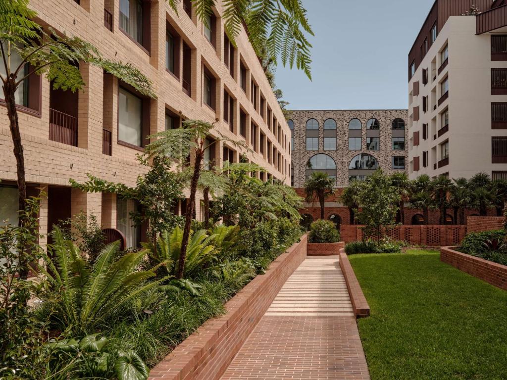 As the architectural centerpiece of Sydney’s new Wunderlich Lane, The EVE Hotel blends historical reverence with bold contemporary design. This 102-room boutique stay, crafted by SJB Architects, draws from the site’s origins as one of Sydney’s earliest pleasure gardens—its curved balustrades and climbing ivy a living nod to the past. Landscape architect Daniel Baffsky’s lush gardens weave native and exotic species into the building’s very fabric, softening its modern lines and merging architecture with nature.
