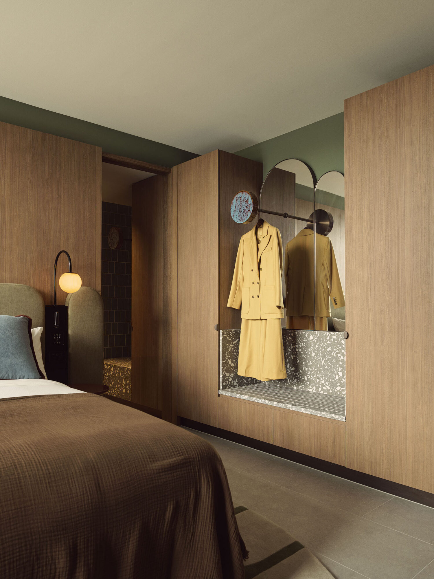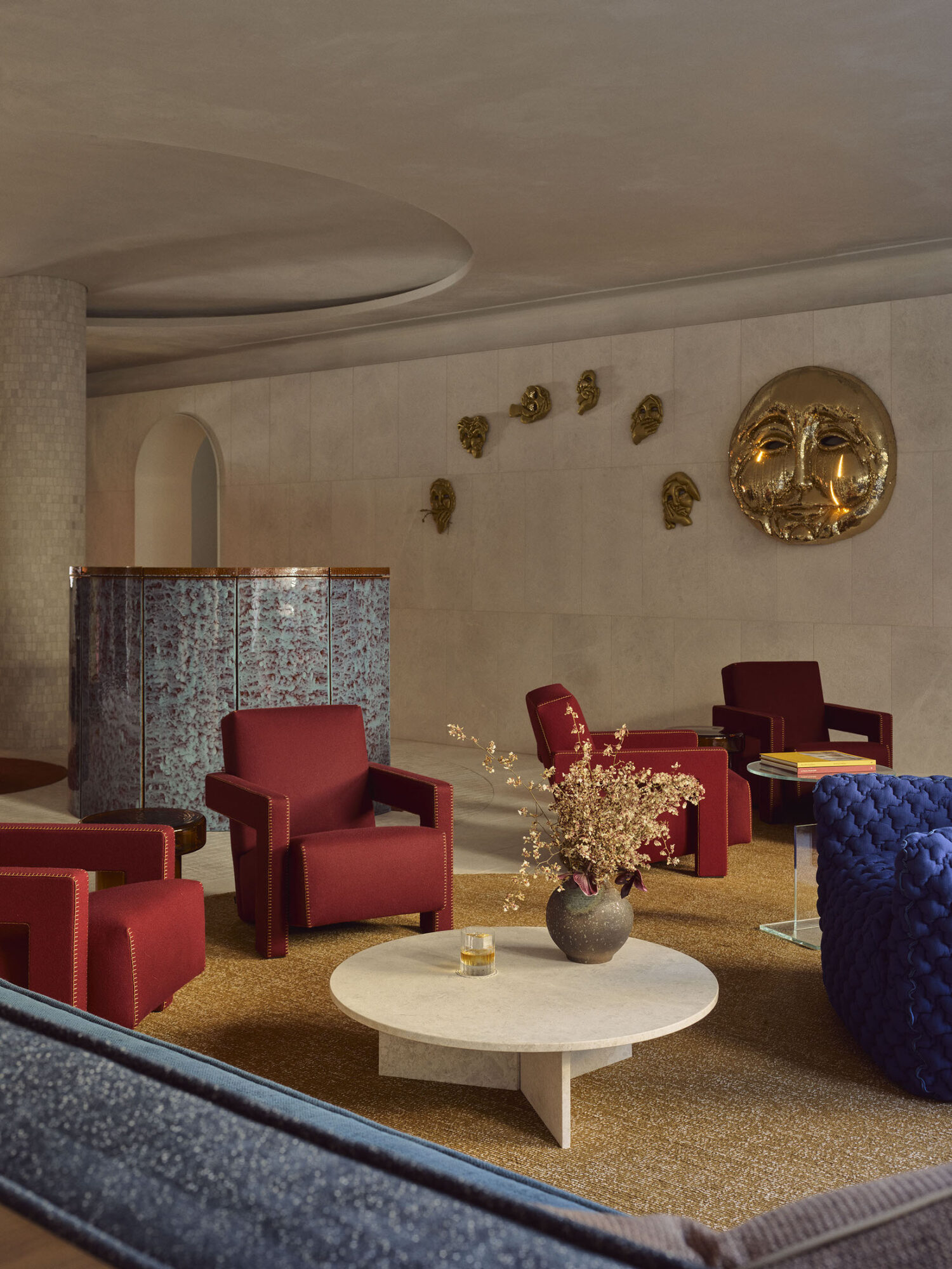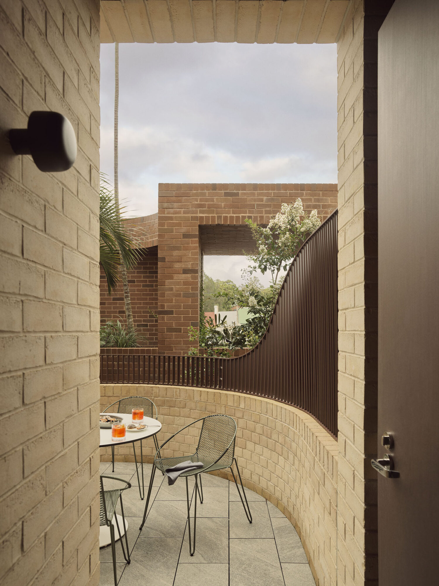 Interior architect George Livissianis channels the colors and textures of the Australian landscape—eucalyptus greens, red clay hues—into spaces that feel grounded yet elevated. Local artistry is woven throughout: custom lighting by Henry Wilson, pieces by Louise Olsen and Tarryn Gill, and bespoke glazed terracotta alongside natural stone. The lobby flows into a serene central courtyard, framing pockets of greenery that invite stillness in the midst of the city. Every guestroom opens to a private balcony, embracing Sydney’s light and air.