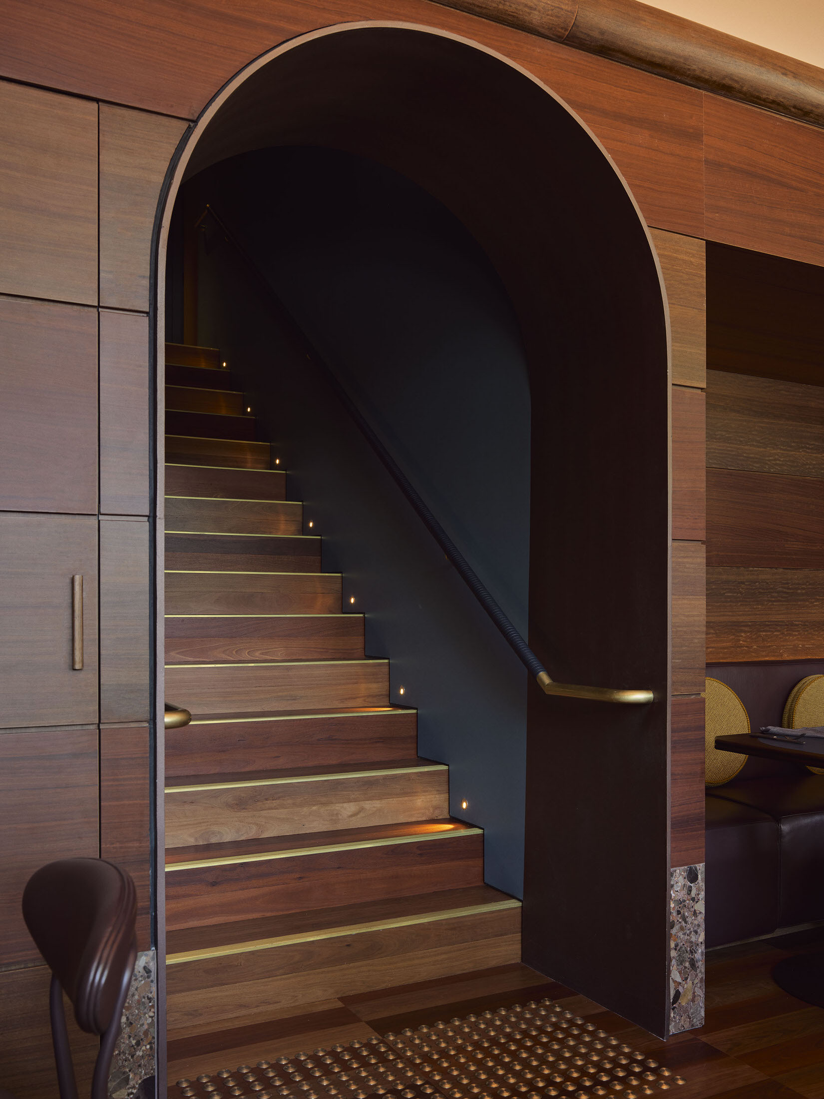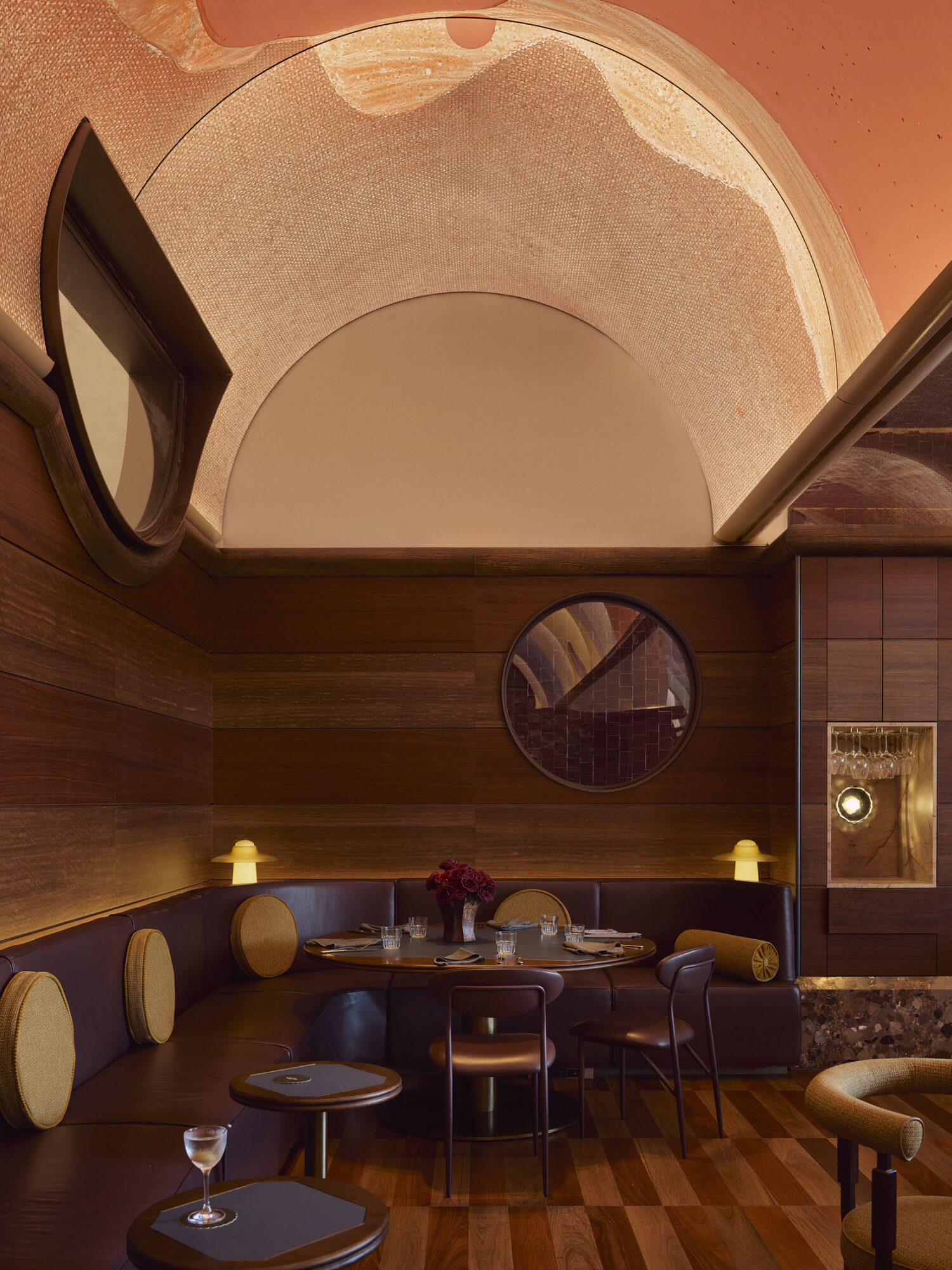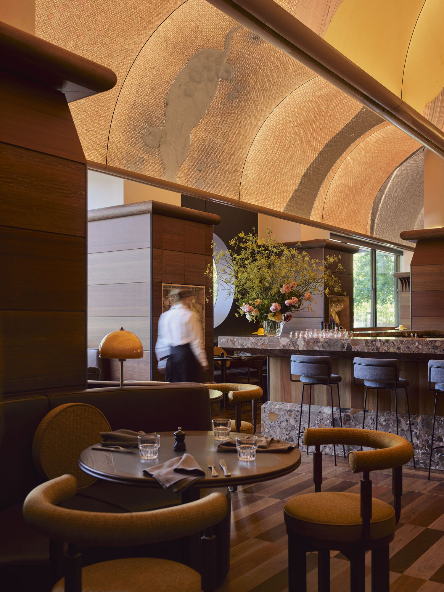 Above it all, the rooftop pool deck is a modern-day pleasure garden—20 meters of heated water flanked by palms and bespoke cabanas, with panoramic views of Sydney’s skyline. Here you’ll also find Lottie, a contemporary Mexican restaurant and mezcaleria by Liquid & Larder. Sandblasted travertine, Palladiana flooring, and raw concrete structure create a tactile, open-air dining experience where the food is as vibrant as the setting.