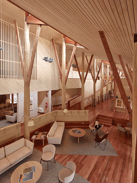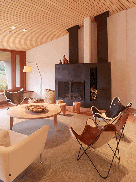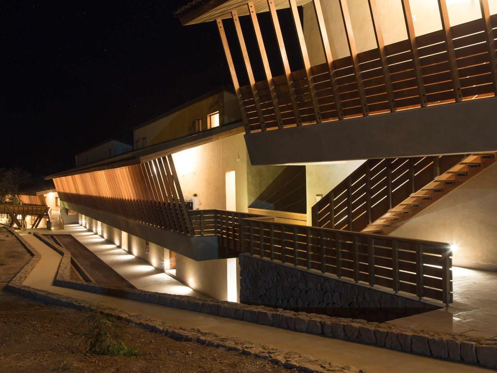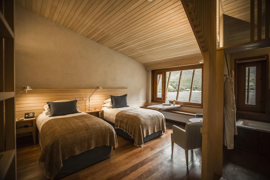 As with Explora’s icons in Patagonia, Atacama, and Easter Island, design duties went to José Cruz Ovalle, Chile’s woodcraft maestro. The result? A graceful cascade of whitewashed buildings with red-tiled roofs, perched along a steep hillside as if they’ve always belonged. Gentle ramps link spaces together like terraces of thought. Inside the central pavilion, open volumes invite the valley in—housing the restaurant, bar, lounge, and reception beneath cathedral ceilings. Everything feels sculptural, intentional, calm but commanding.