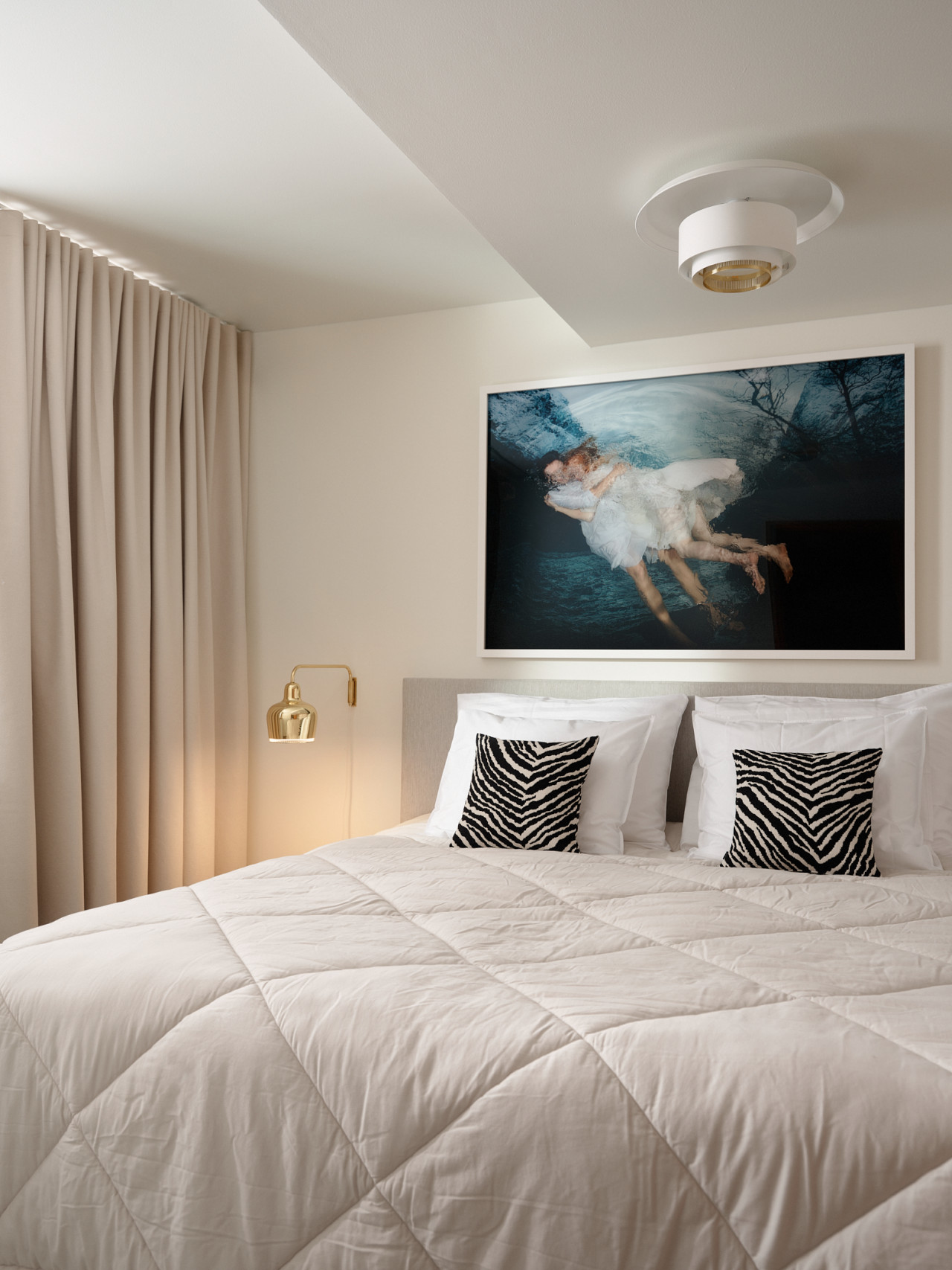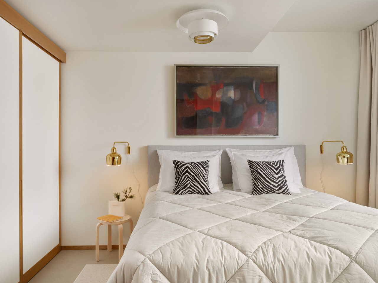 Each apartment is a design story in its own right. Aino, with its soft tones and tactile materials, channels a sense of quiet domesticity and warmth—an homage to Aino Marsio-Aalto’s refined sensibilities and her influential role in shaping Finnish interior design. Elissa, by contrast, is bolder and more architectural, a nod to Elissa Aalto’s strong, structural approach and forward-looking vision. Both overlook the lush Hesperia Park, with large windows framing the natural beauty that so deeply influenced Aalto’s work. Adding to the atmosphere is a curated selection of art from HAM (Helsinki Art Museum), each piece hand-picked to reflect the personalities and design philosophies of the women behind the names.