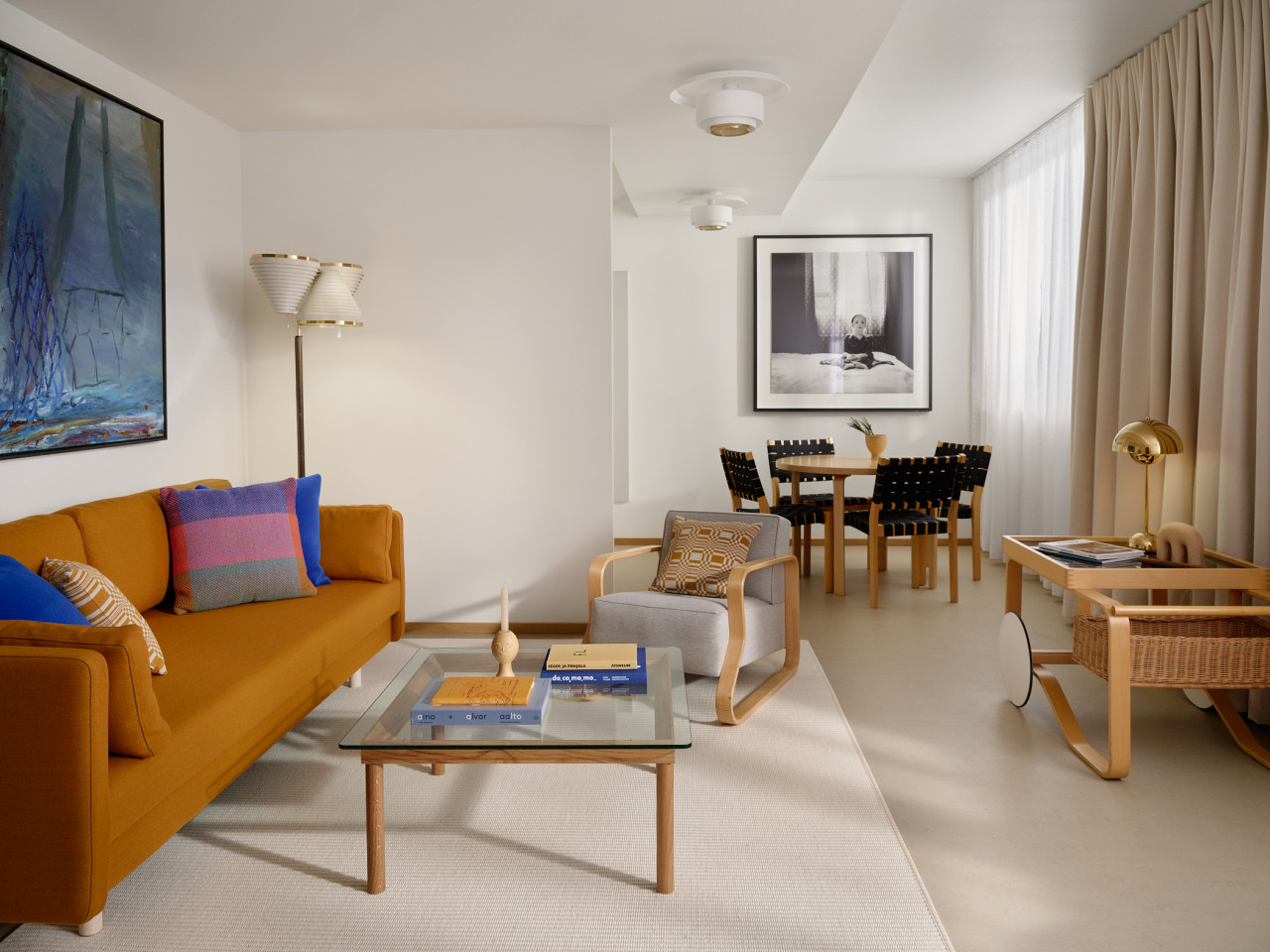 Finlandia Hall is one of Aalto’s architectural masterpieces, a modernist landmark completed in 1971 and known for its dramatic white Carrara marble façade and poetic play of light and geometry. The two restored apartments—named ‘Aino’ and ‘Elissa’ after Aalto’s architect wives and creative collaborators—are a continuation of that legacy. Inside, original midcentury details have been carefully preserved and paired with contemporary Scandinavian pieces from Hay, &Tradition, and other leading design houses, creating spaces that feel timeless yet alive. It’s a restoration so thoughtful it’s earned a Wallpaper Design Award*, not just for its aesthetic success but also for its emphasis on sustainability and responsible reuse—a principle Aalto himself championed.