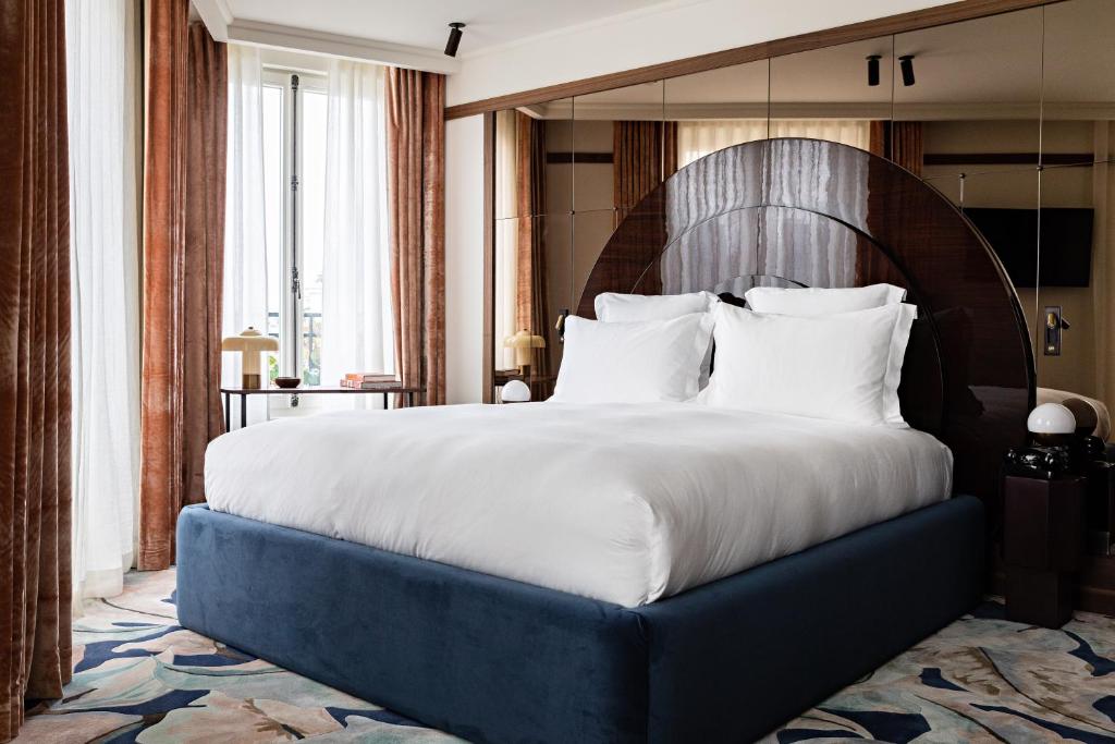 For a truly lavish stay, the Florida Suite provides Eiffel Tower views and a sumptuous marble bathroom adorned with retro 1970s ceramics—a testament to the hotel’s seamless blend of indulgence and charm. It’s both over-the-top and deeply comforting, like velvet and perfume on a winter morning.