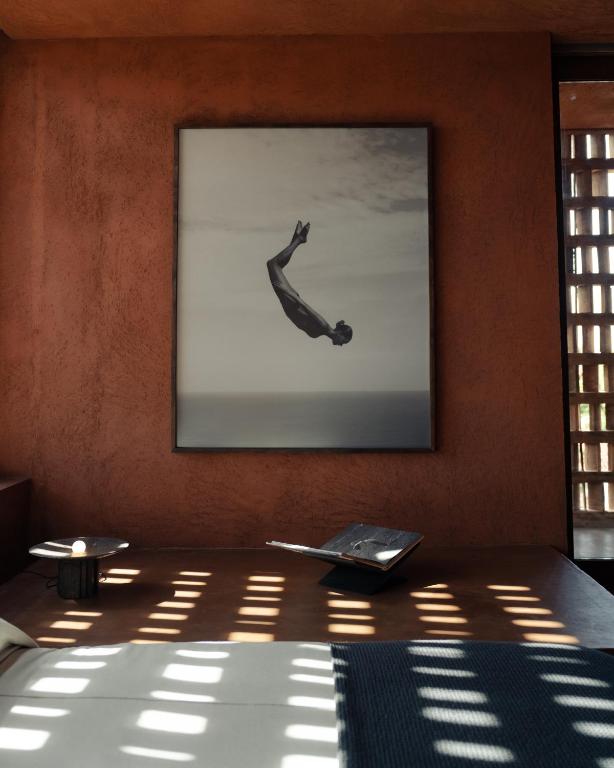 Further’s vision spills beyond the rooms. There’s a Thomas Surfboards concept space, a boutique from Jakarta’s Oaken Lab, a studio suite nearby, and more rooms and a rooftop pool coming soon. Everything is meant to be wandered through—no walls, no gates, no “resort bubble.” Instead, guests stroll between buildings, greeting locals, stopping for kopi, drifting into galleries or resting in the breezy shade of a terrace.
